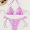 The alluring sexy floral pattern ensures you stand out, capturing the vibrant energy of summer. Paired with a delicate and captivating lace-up detail and an inviting backless design, this bikini is crafted to turn heads and guarantee all eyes are on you. The triangle cup style offers a classic and flattering shape.