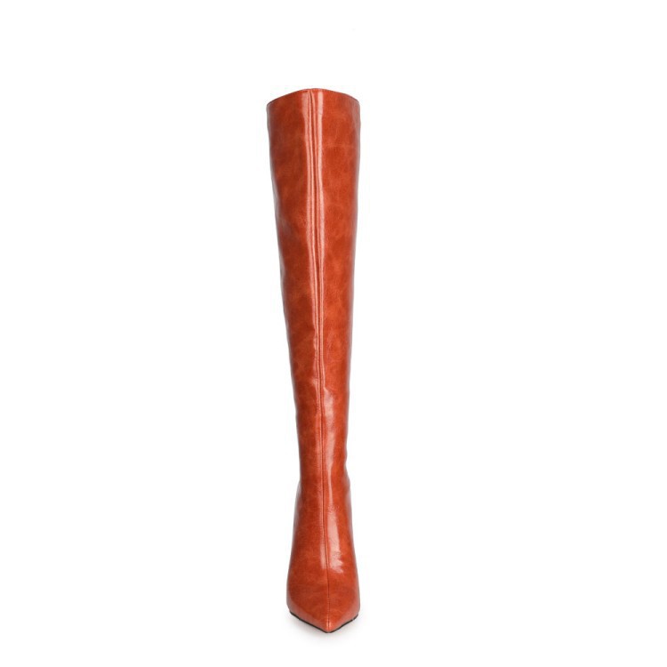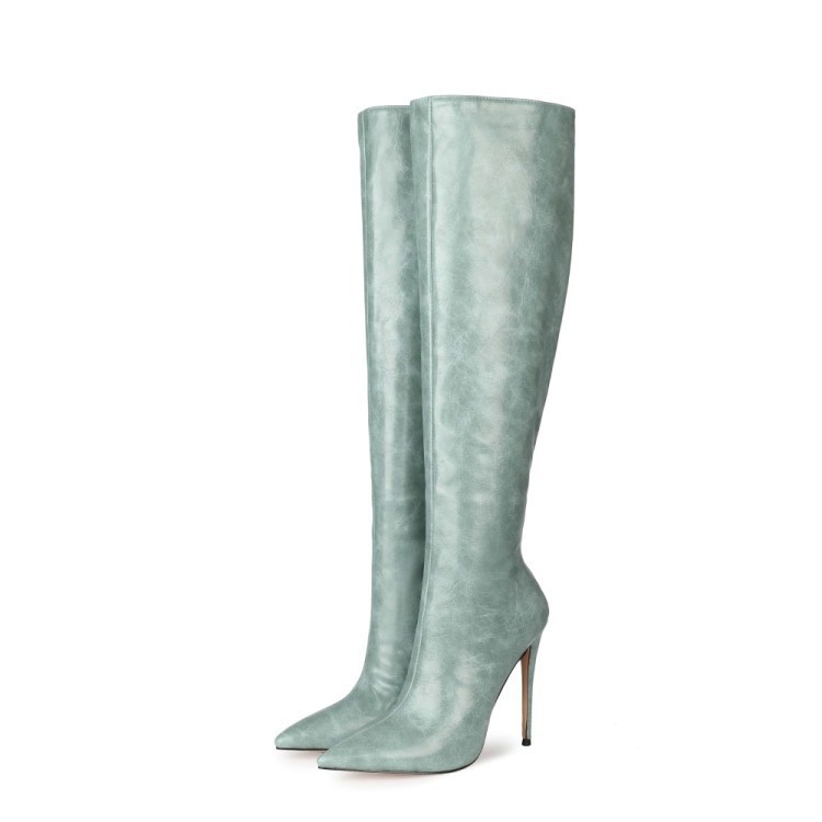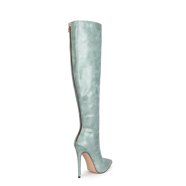 Discover these timeless High Heel Round Toe Back Zipper Boots in a range of gorgeous hues like light blue, orange, grass green, and dark blue! Crafted with luxurious microfiber crazy horse fabric, these trendy boots are available in sizes 35-47. It takes just 4-7 days to create a pair for you, with a heel height of 10-12cm, tube height of 45cm, ankle circumference of 24cm, calf circumference of 34cm, and thigh circumference of 36cm. Look no further for the perfect boots!
