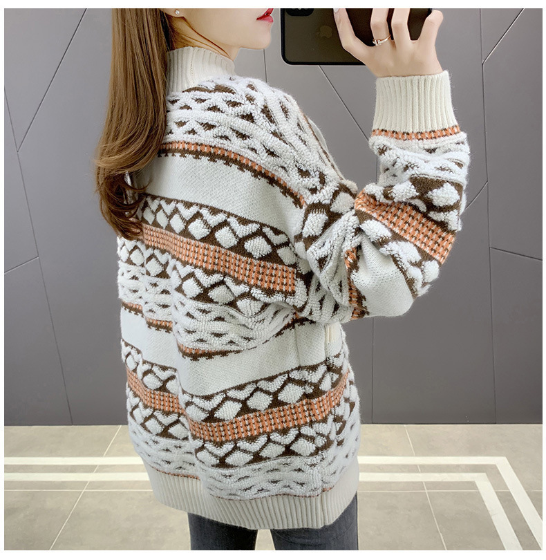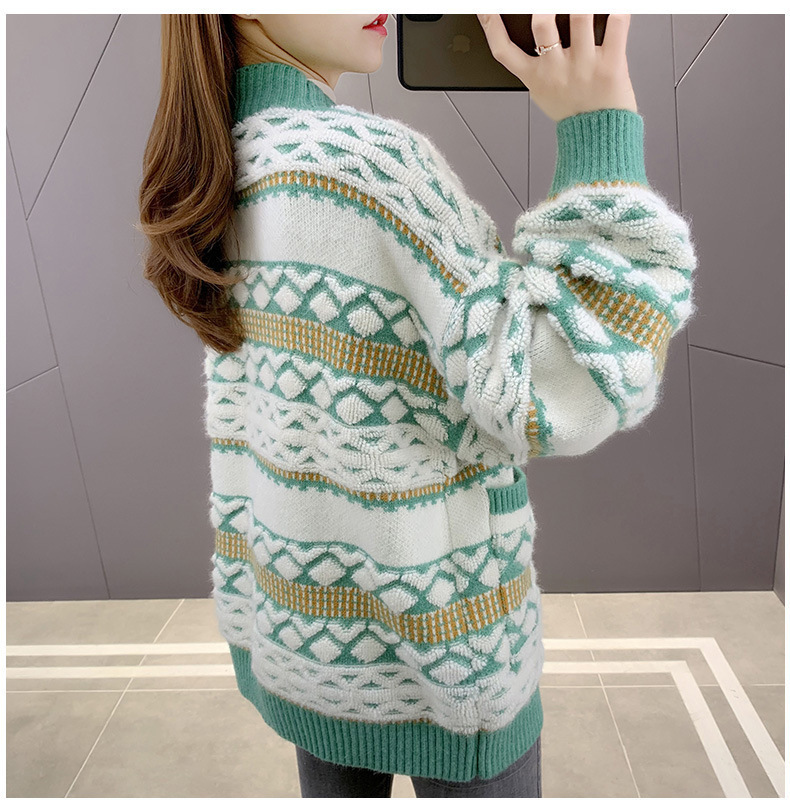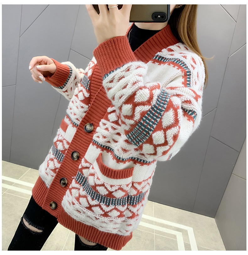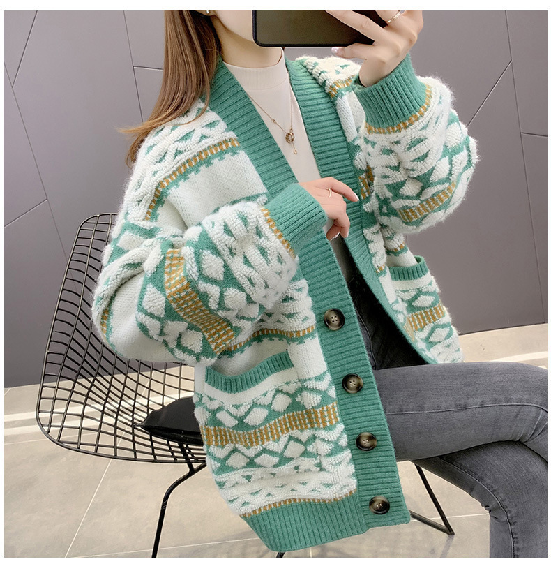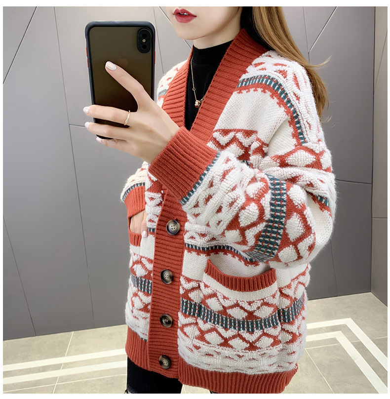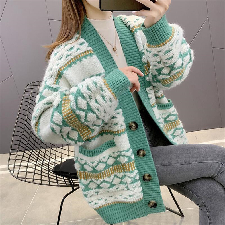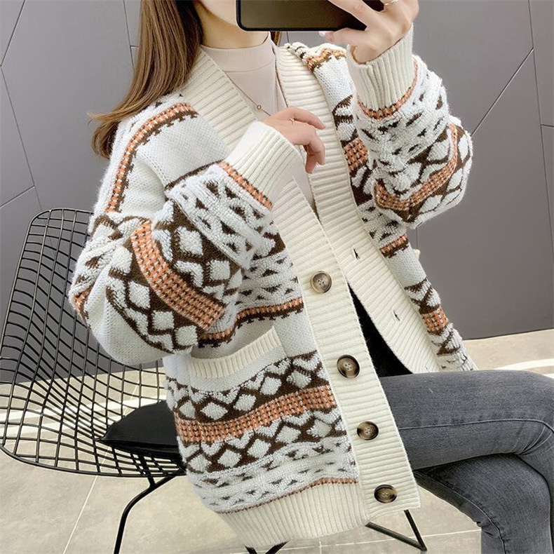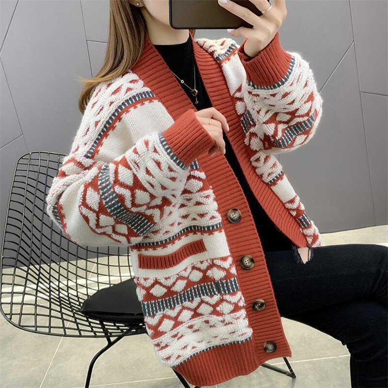 Knitted Cardigan V-neck Loose This loose-fitting knitted cardigan is perfect for staying cozy and stylish during the colder months.