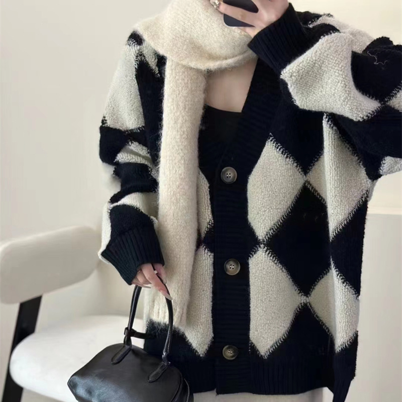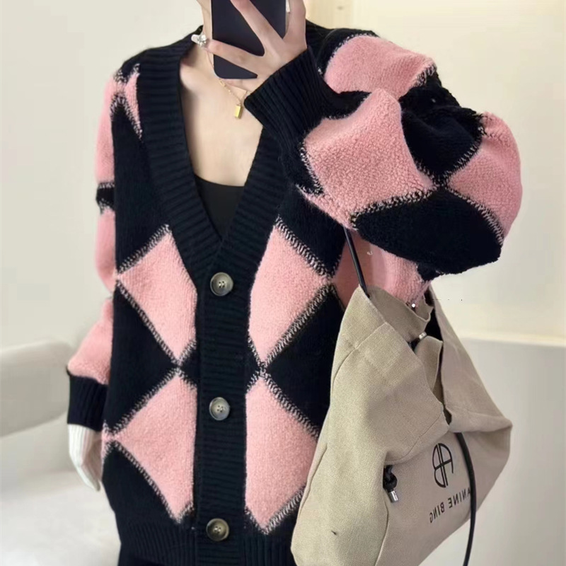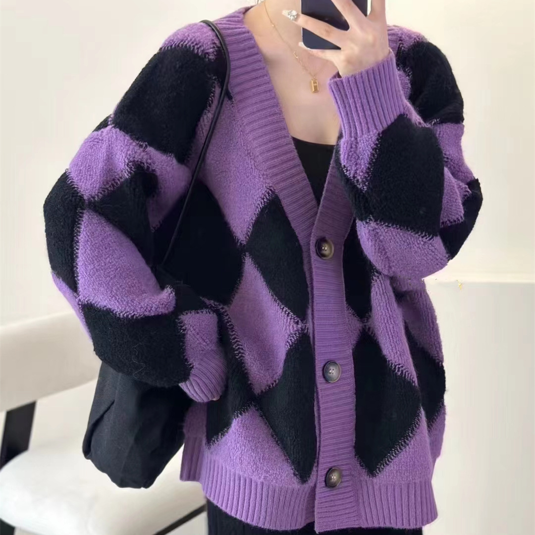 Korean contrasting color cardigan This cardigan not only adds a touch of traditional Korean fashion to your wardrobe, but also features a contrasting color design that will make you stand out from the crowd.