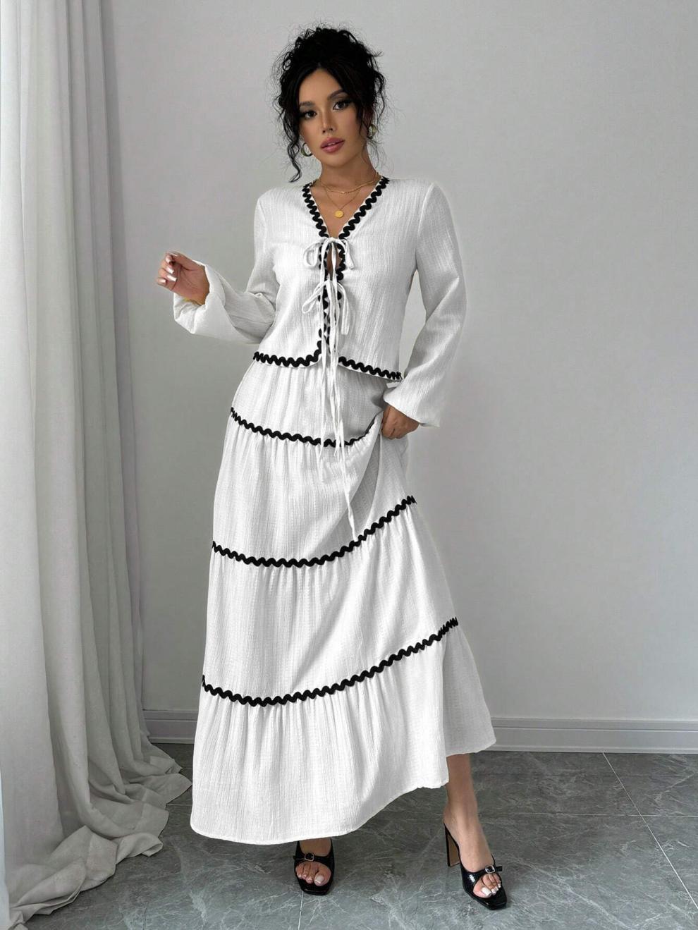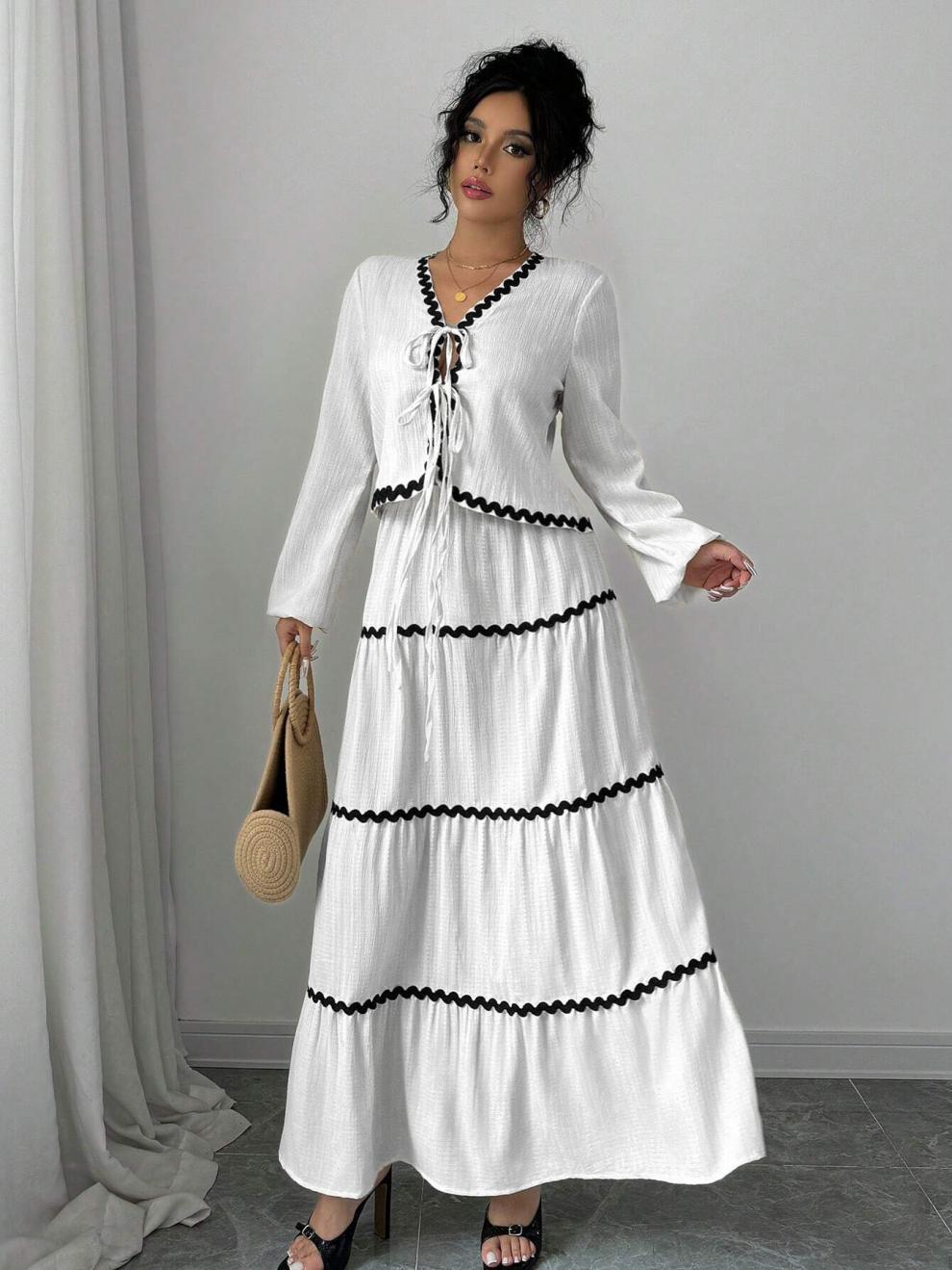 Shape a confident, elegant A-line silhouette with this stylish two-piece set.