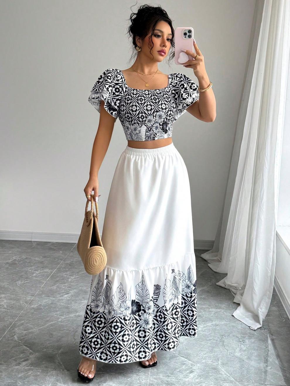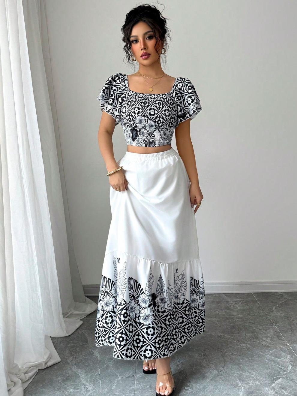 Stand out effortlessly with this Printed A-Line Dress Set that combines bold patterns with a flattering silhouette for a daring look.