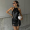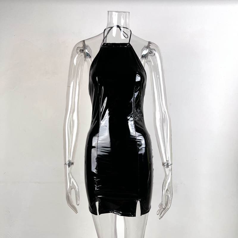 A bold dress with a large backless cut, waist bag detail, and a daring hip slit for a confident look.