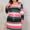 Plus Size Striped V-Neck Long Sleeve Mini Dress