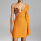 The Long Sleeved Spicy Bandage Dress is a stunning piece that embodies the essence of European style with a modern twist. This dress is designed to make a bold statement with its vibrant orange color and unique features, making it a must-have for any fashion-forward wardrobe.