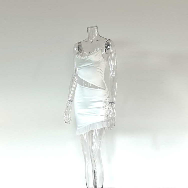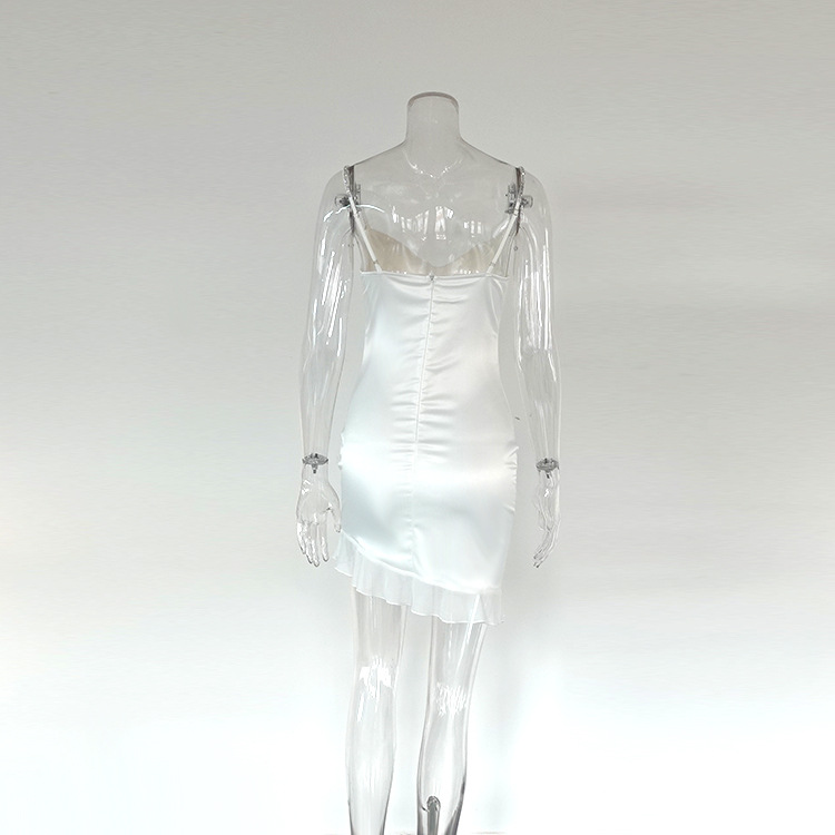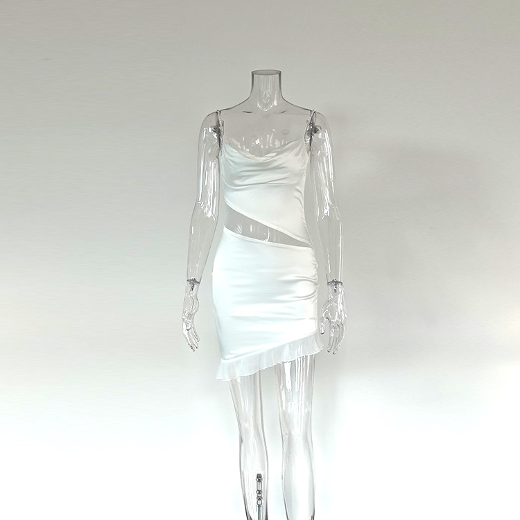 Stand out in this sleek pencil dress with a bold ruffle hem that adds a daring flair to your silhouette.