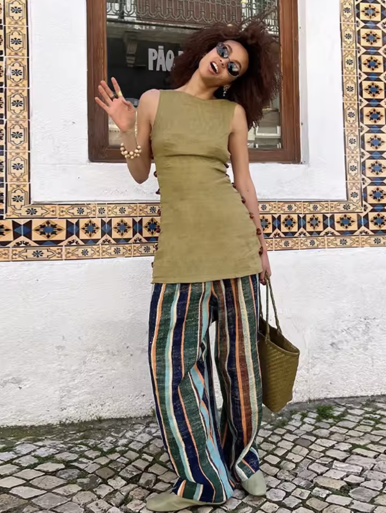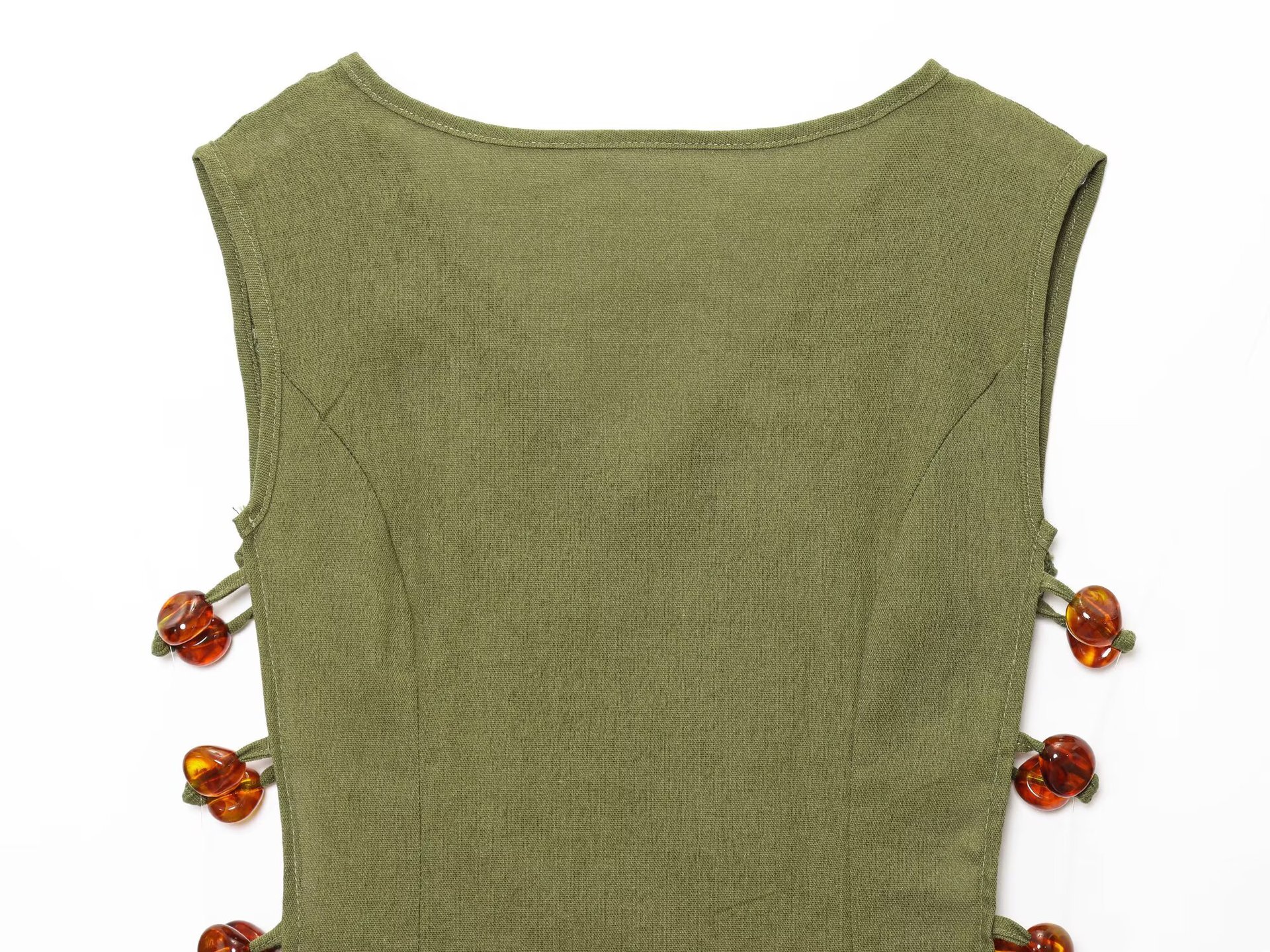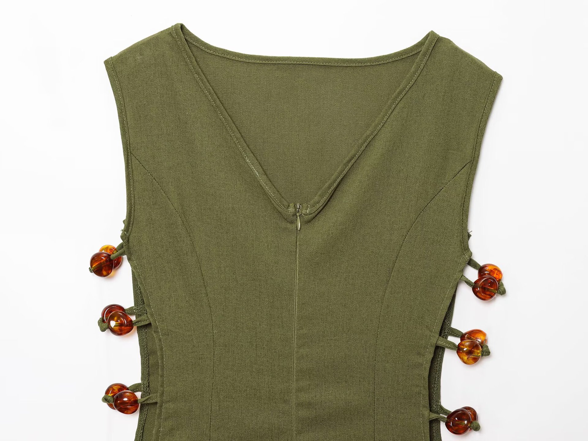 Make a bold statement with our elegant sleeveless linen dress. Featuring a stylish waist cut-out and a flattering mid-waist fit, this solid-color dress is perfect for any occasion.