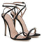Glittering rhinestones adorn the fashion sandals, crafted from artificial PU and rubber. The fish-beak toe shape and water diamond elements provide a stunning look, secured with a buckle fastening. Finished with lacquer leather, the solid-colored sandals feature adhesive technology and faux leather inner material, presented in a low-cut wrap-heel design with a side gap and thick heel crafted from PU. These beauties boast a heel height of over 8cm.
