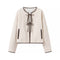 Round Neck Lace Up Contrasting Edge Pocket Jacket