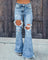 Distressed water washed micro flared jeans These jeans are crafted using advanced distressed water washing techniques, resulting in a unique and stylish micro flare design. Perfect for fashion-forward individuals looking to make a statement with their denim.