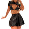 Embrace luxury and seduction with our Patent Leather Nightclub Uniform. Available in a sleek black color and sizes ranging from S to XXL, this is the ultimate statement piece for any night out. The set includes all elements of a complete outfit - headwear, neck accessories, wrist cuffs, bra, skirt, and even underwear. Made with high-quality polyester fabric, this is a premium product designed for those who appreciate the finer things in life. Packaged in a chic bag, this is a must-have for any confident and stylish individual. Own the room with our exclusive Patent Leather Nightclub Uniform.