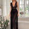 V-Slit Lace Patchwork Suspender Long Lingerie Skirt Set