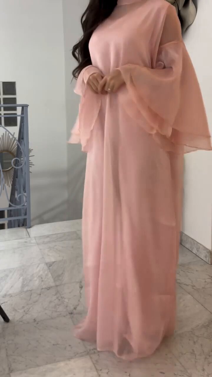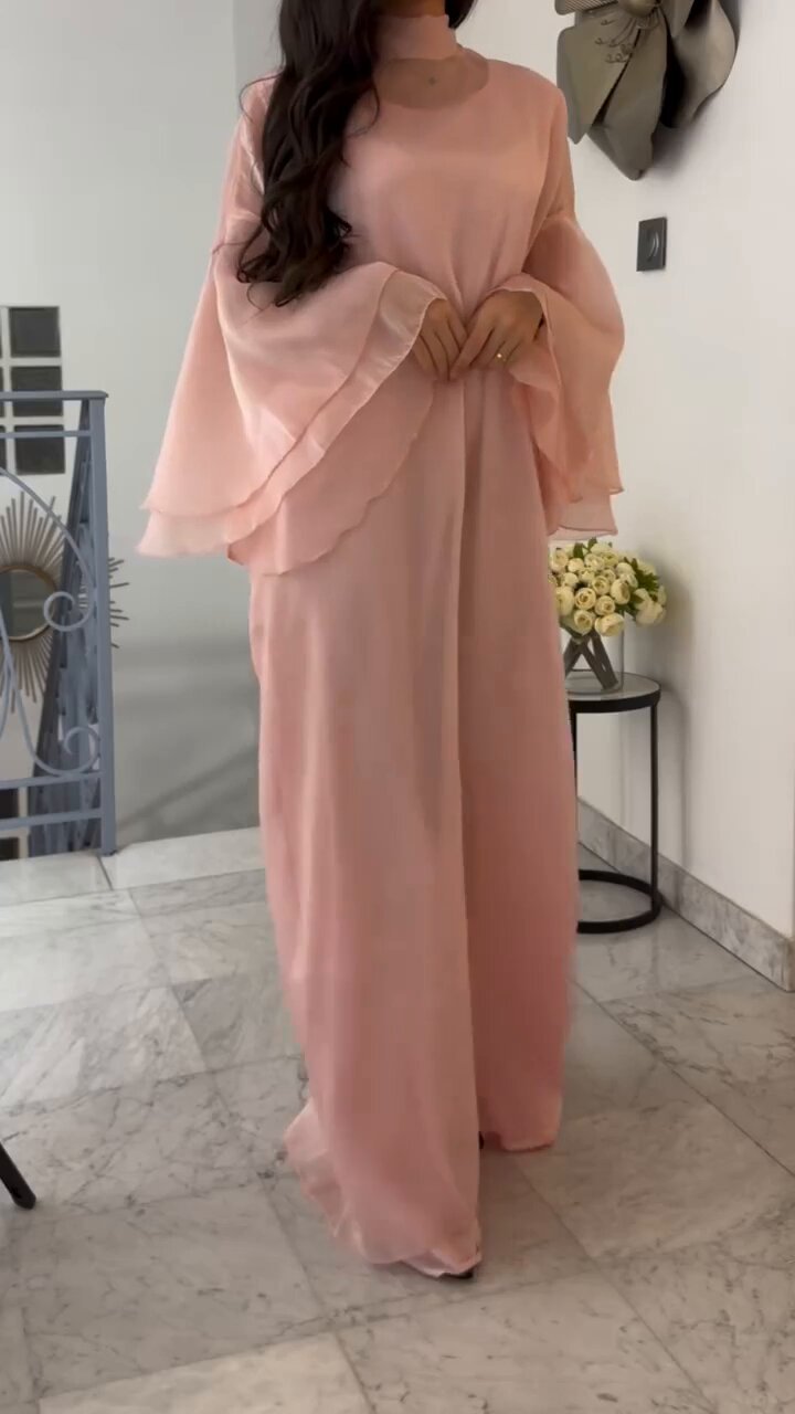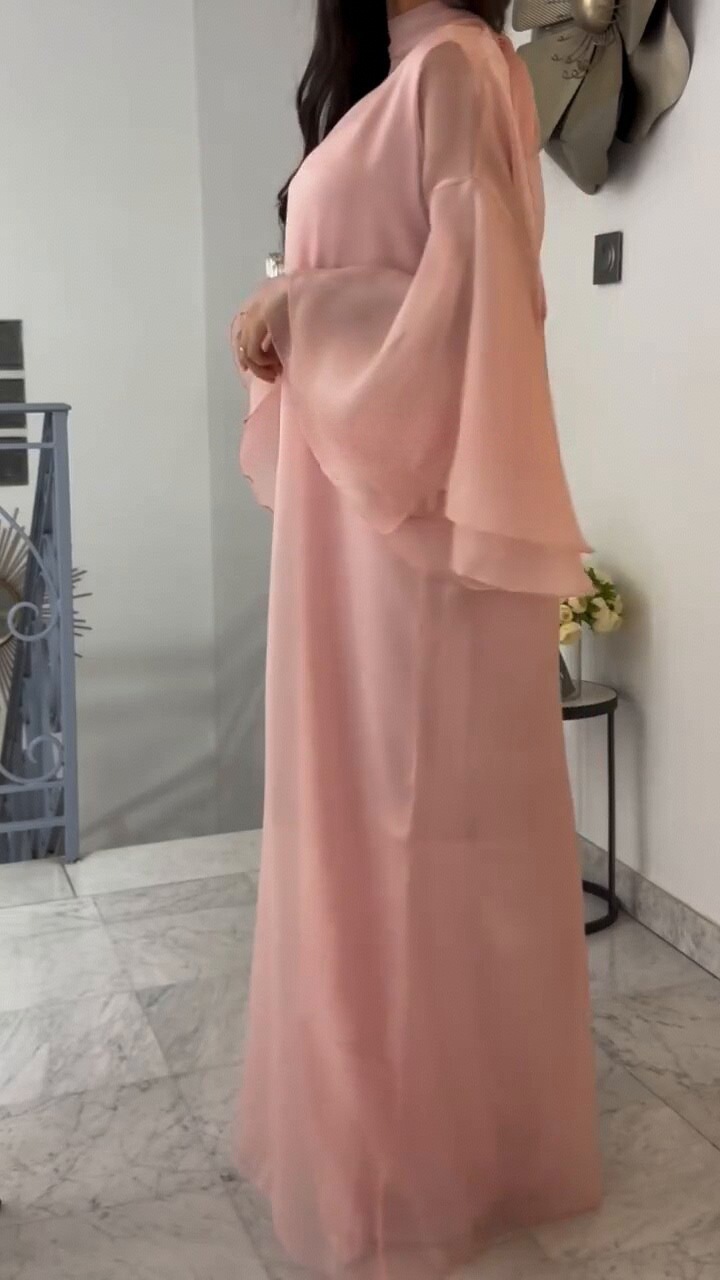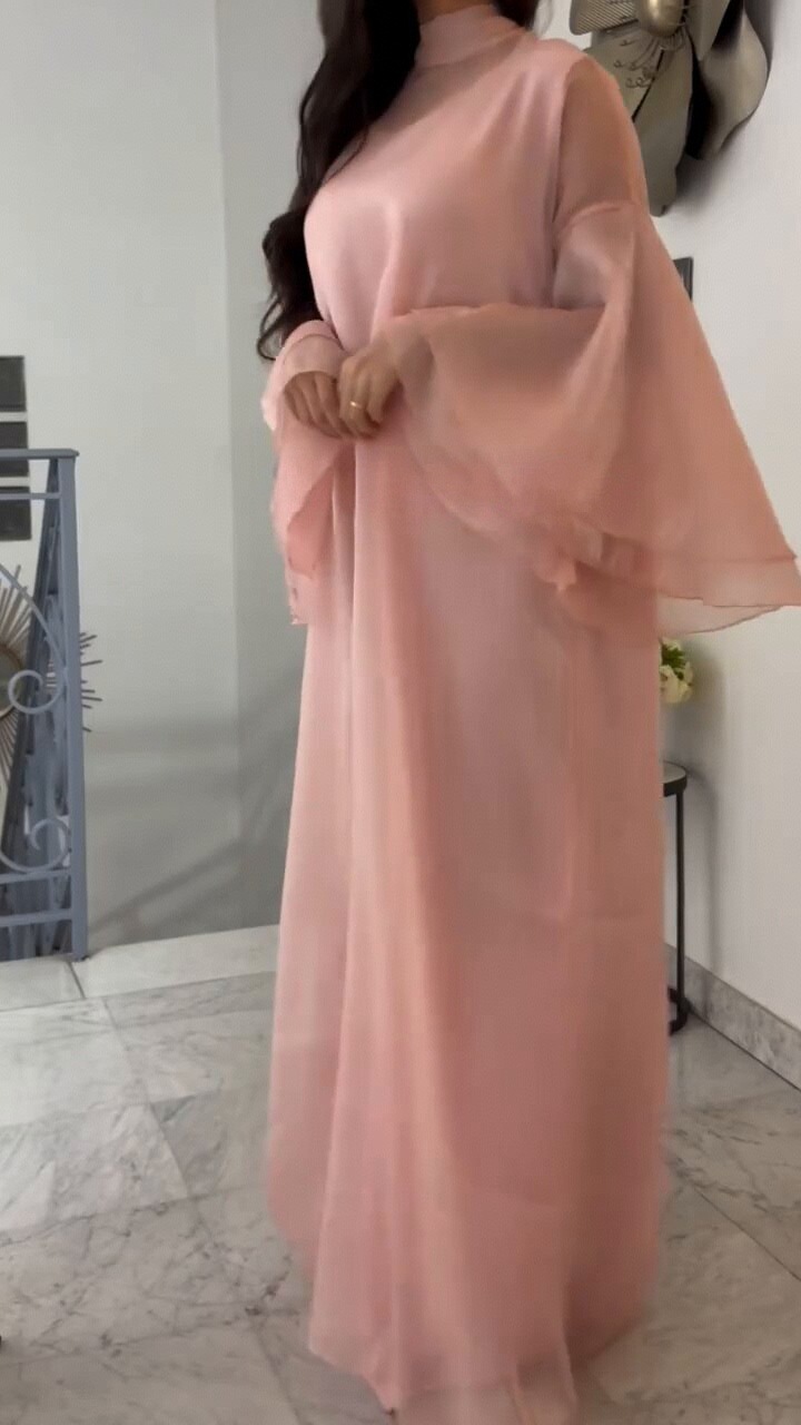 The Drama: The striking stand collar and dramatic trumpet (flare) sleeves are the focal points, offering an elegant, voluminous detail that sets this piece apart from typical maxi dresses.