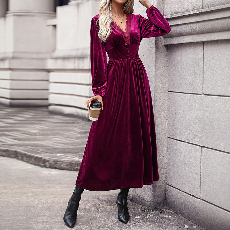 Luxe Velvet: Wine Red Lace Dress