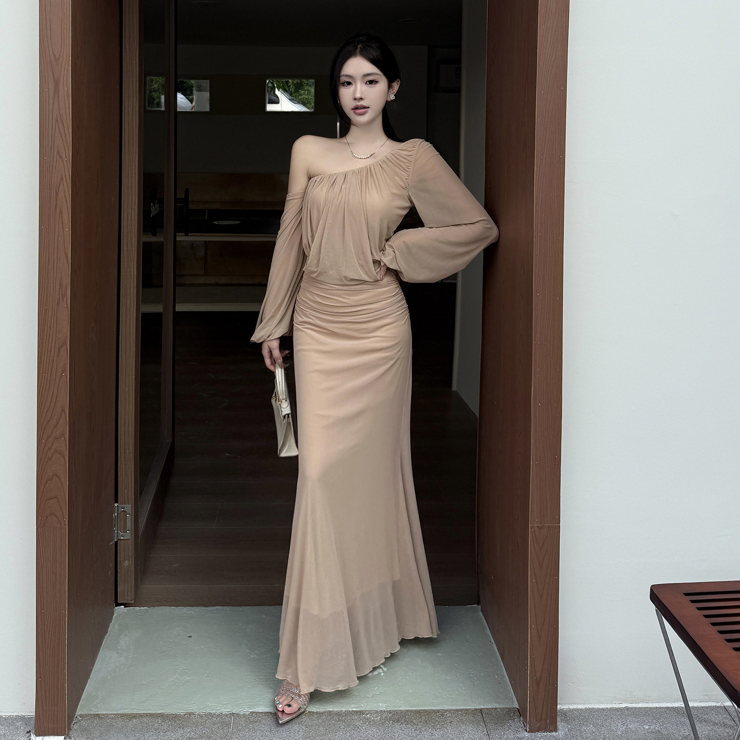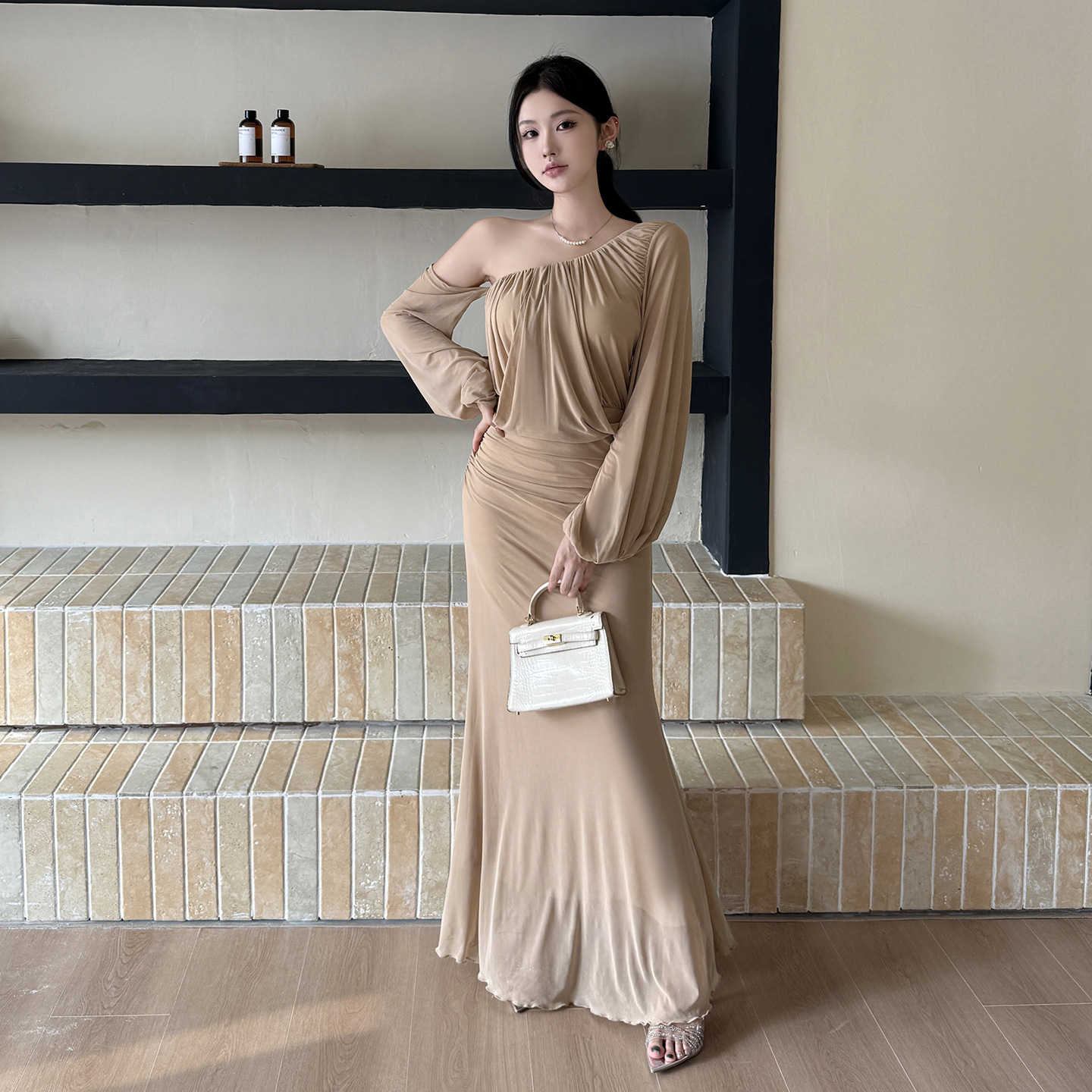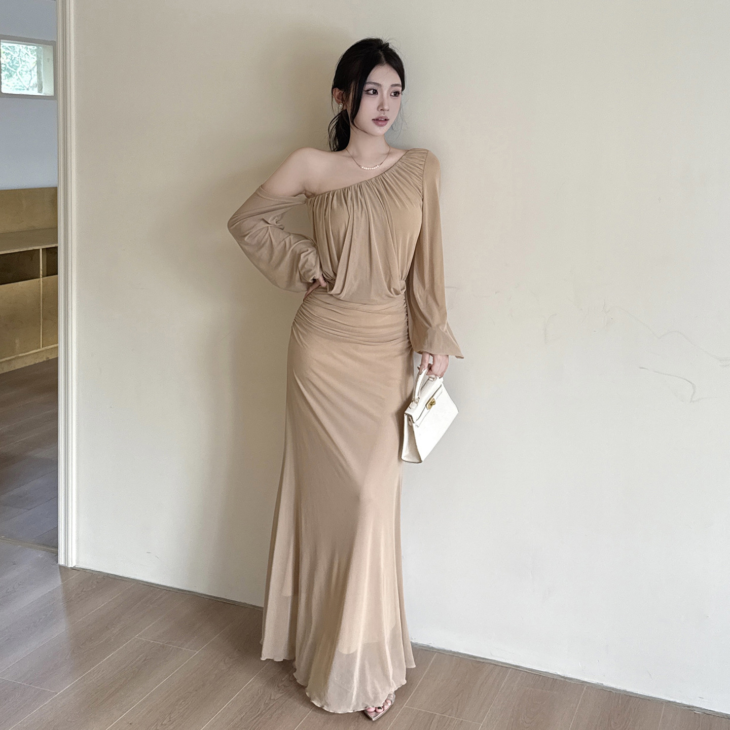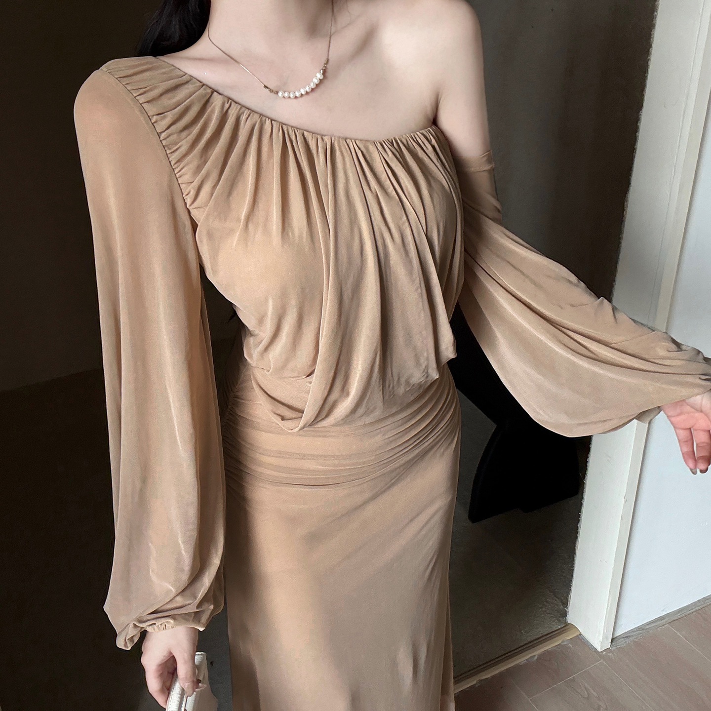 Ready to redefine your casual style? The Apricot Mesh Slant Shoulder Midi Dress is the perfect piece to showcase your confident, fashionable side. Shop now and own the runway!