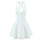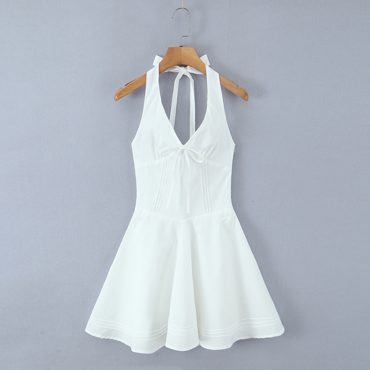 Turn heads in this daring mini dress featuring a deep V-neck and stylish back straps for a bold, confident look.