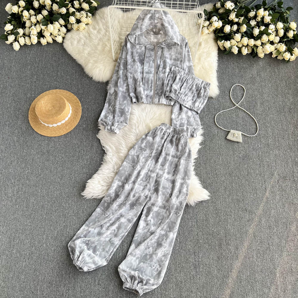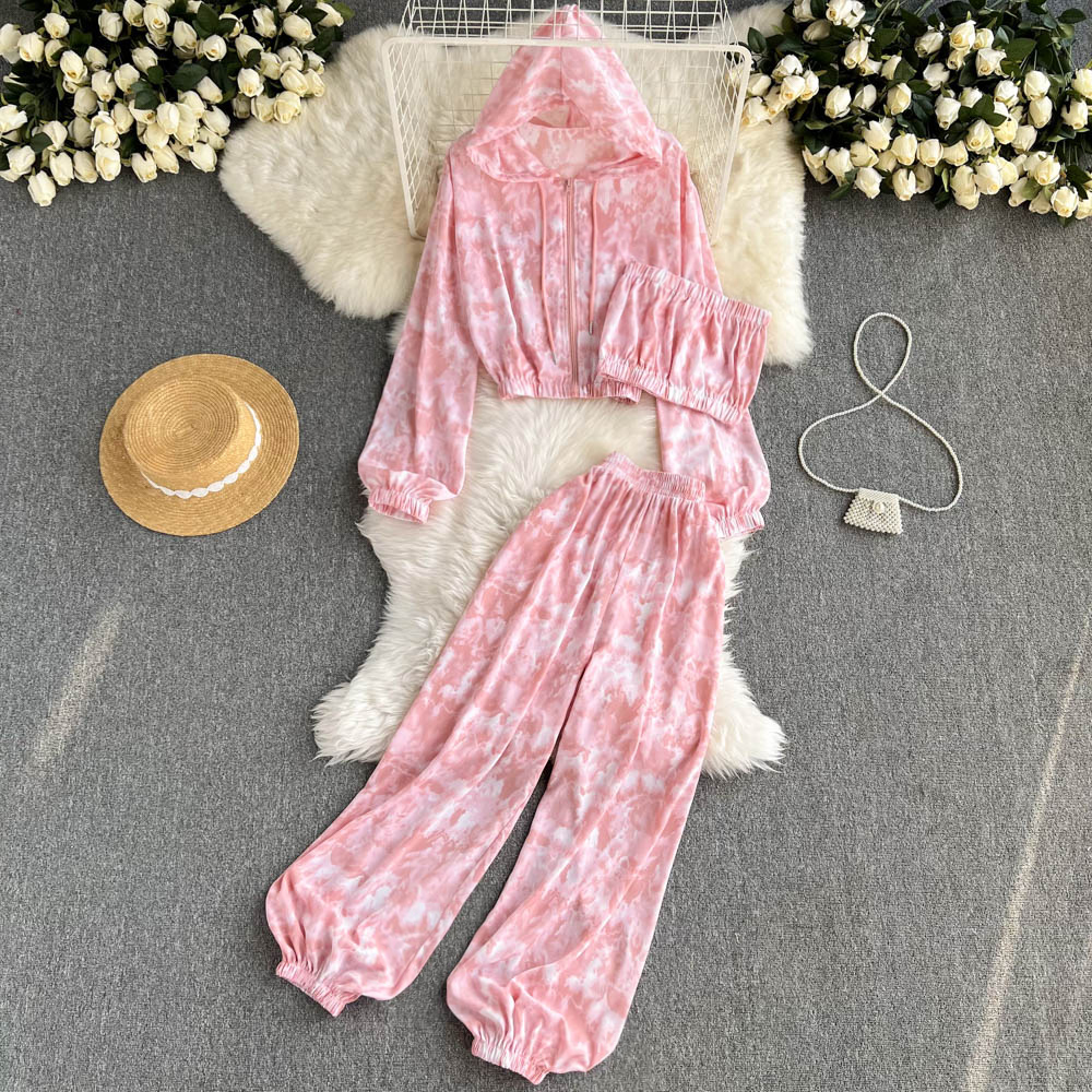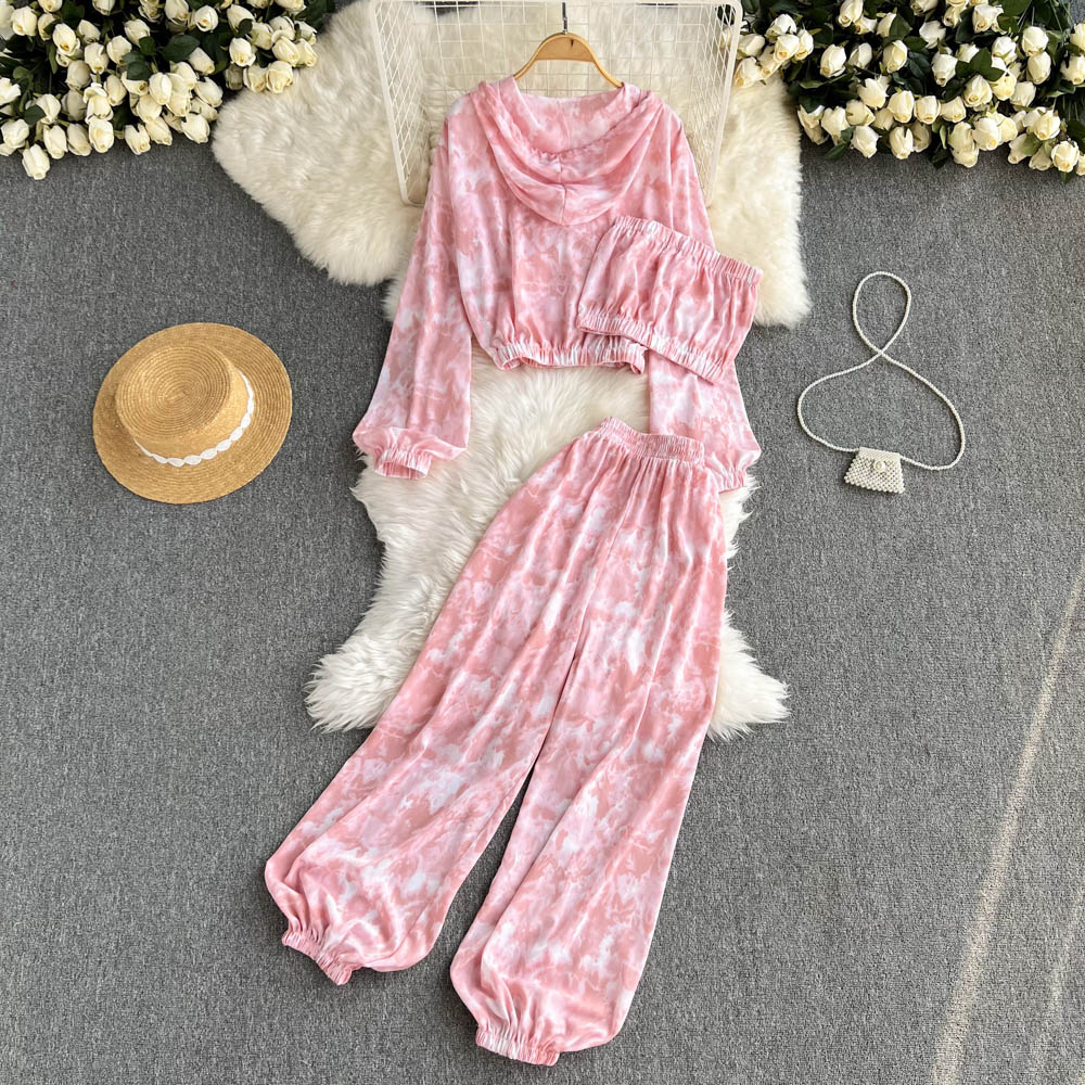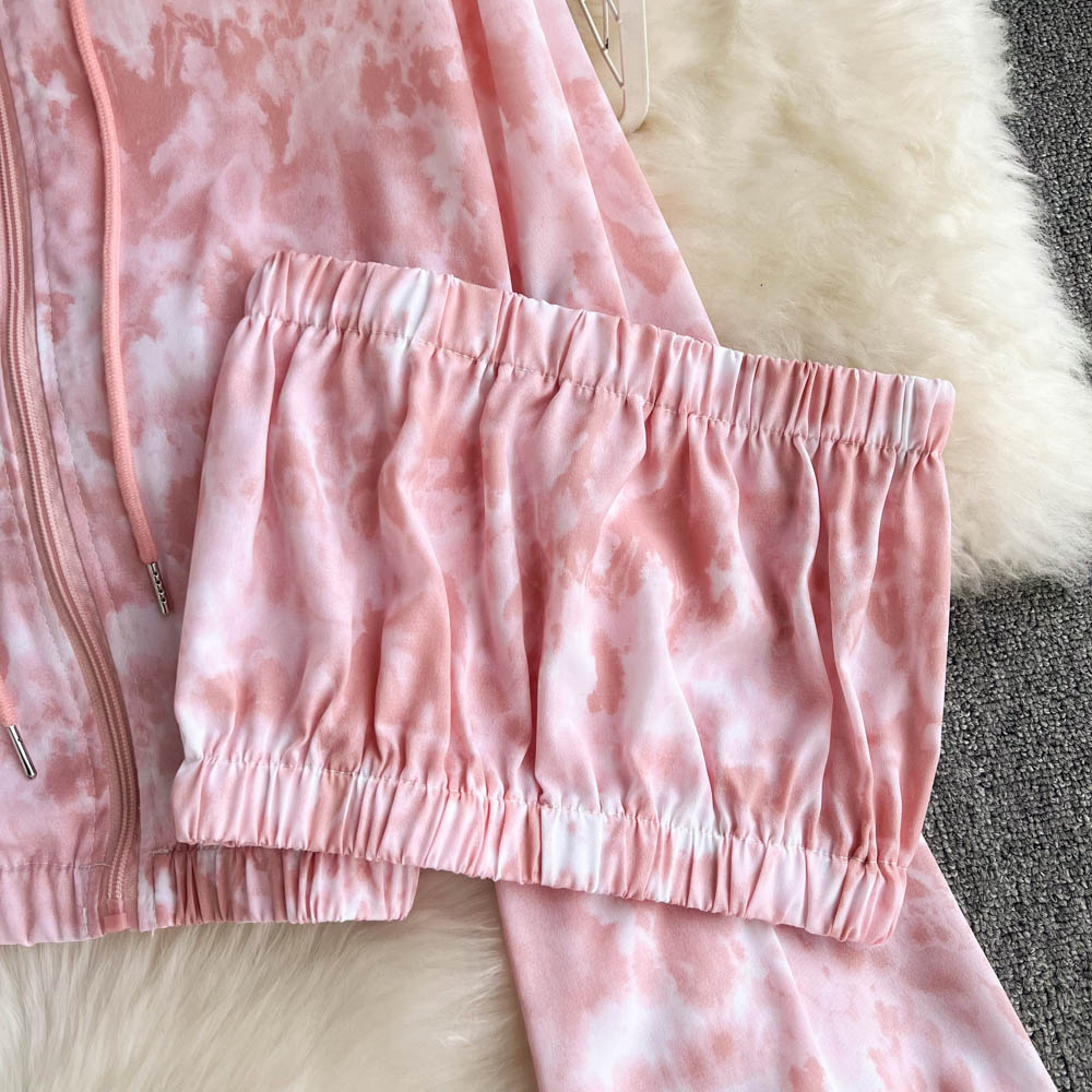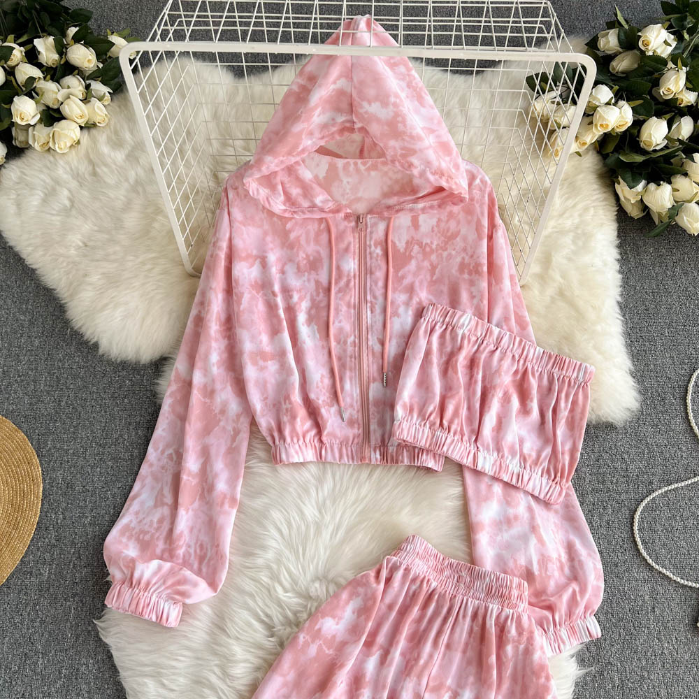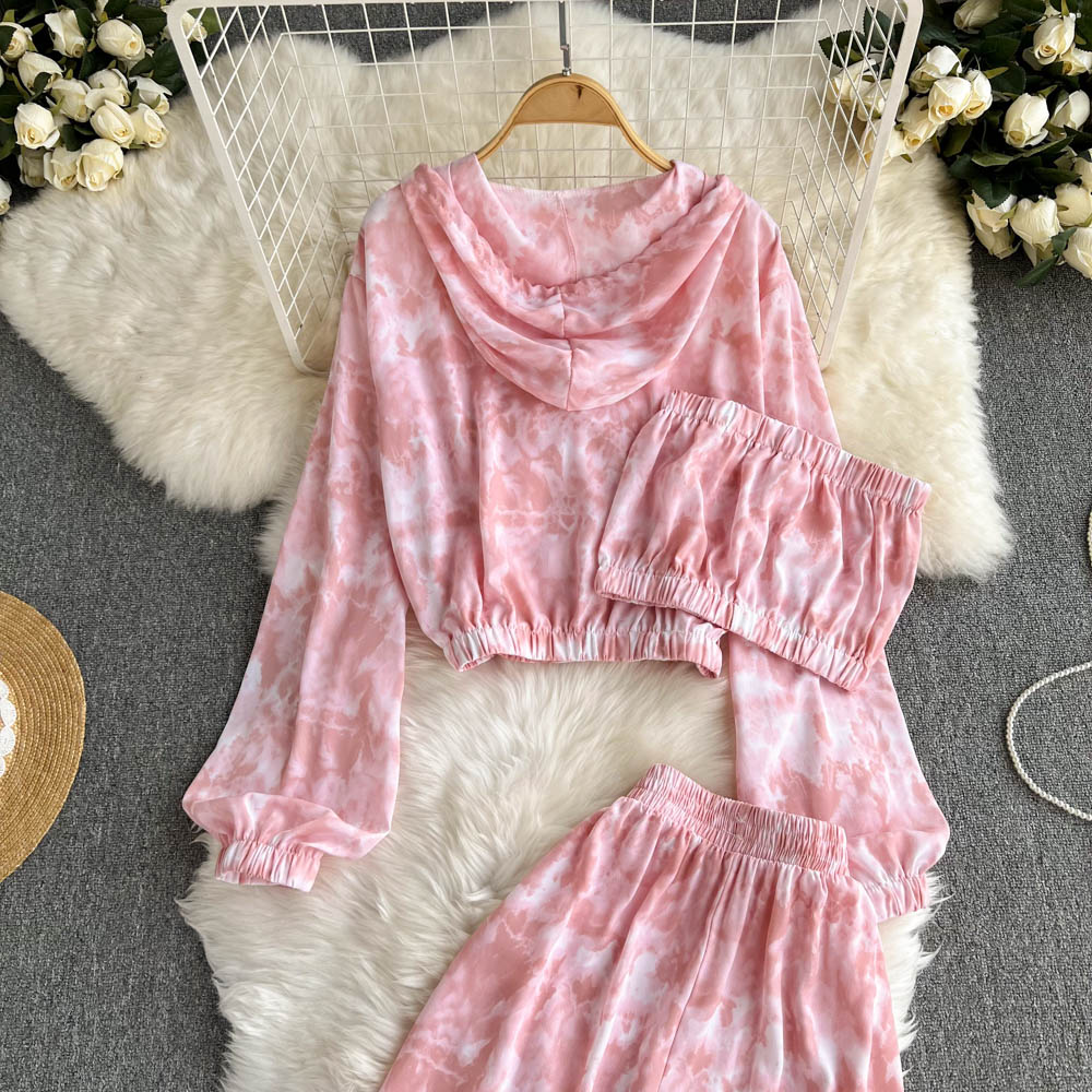 This Retro Tie-Dye Three Piece Set is crafted from a blended fabric. Please note: matching brand hats, accessories, bags, and shoes are strictly for styling purposes, not for sale. In addition, the display and shooting environment may cause a slight difference in the product's color compared to its pictured version.