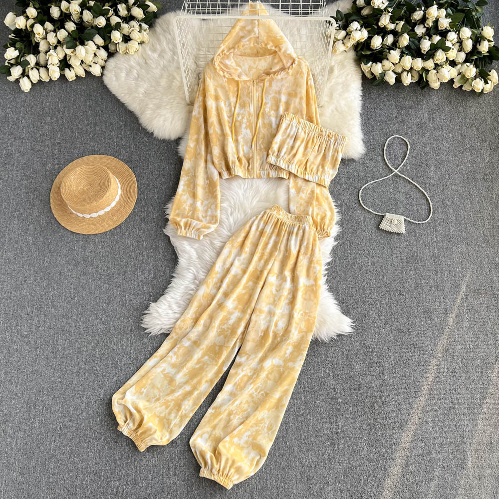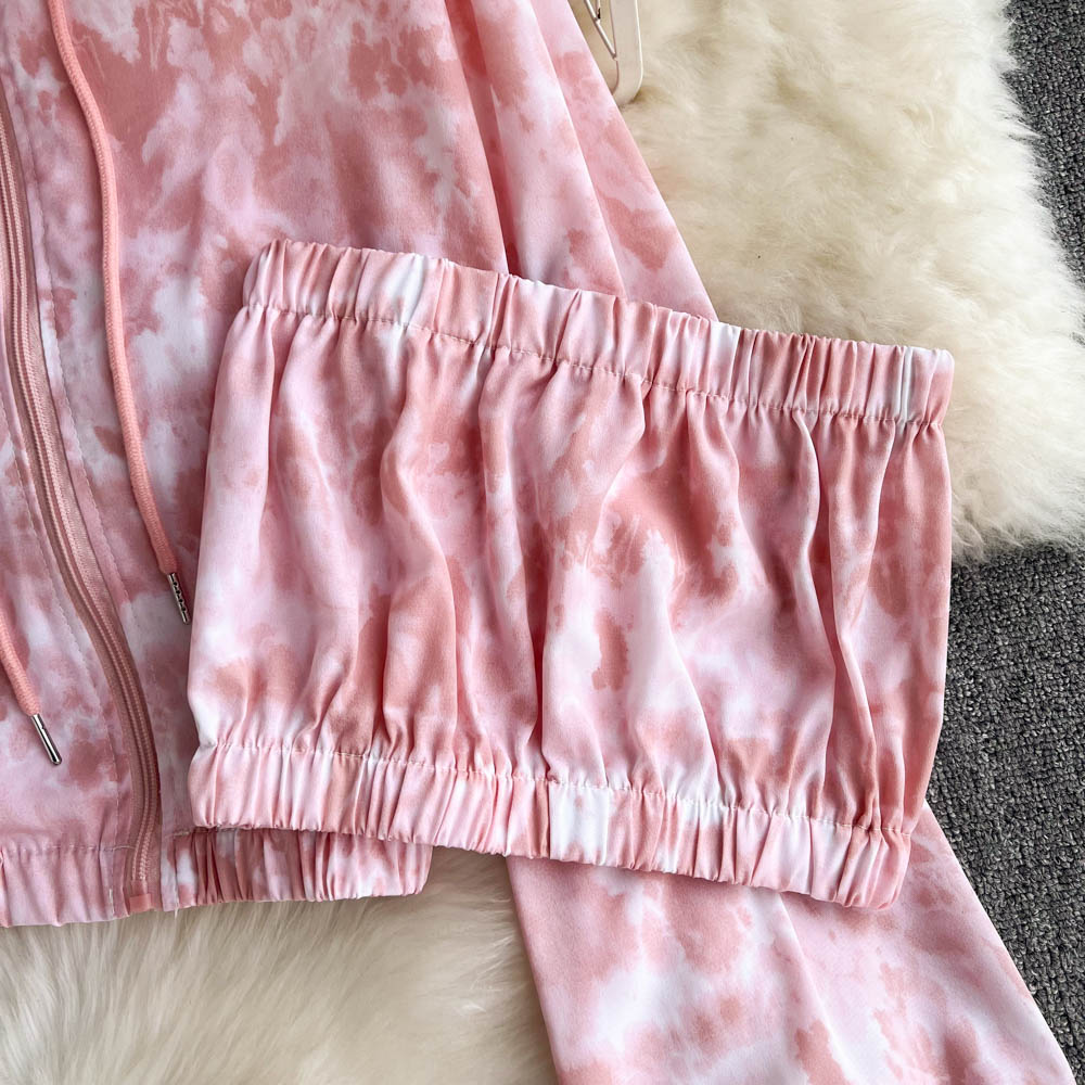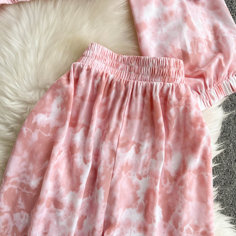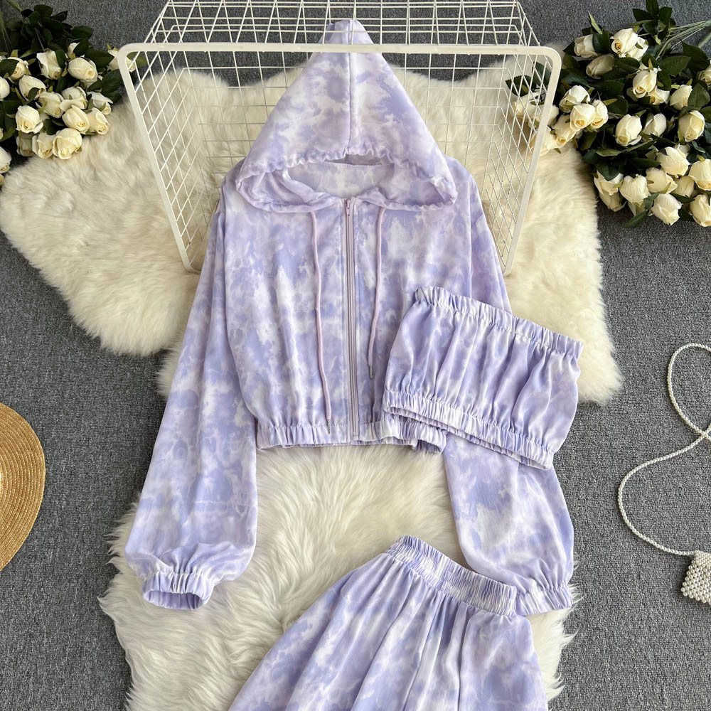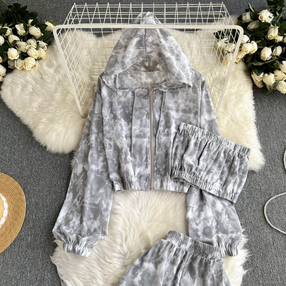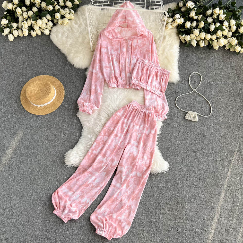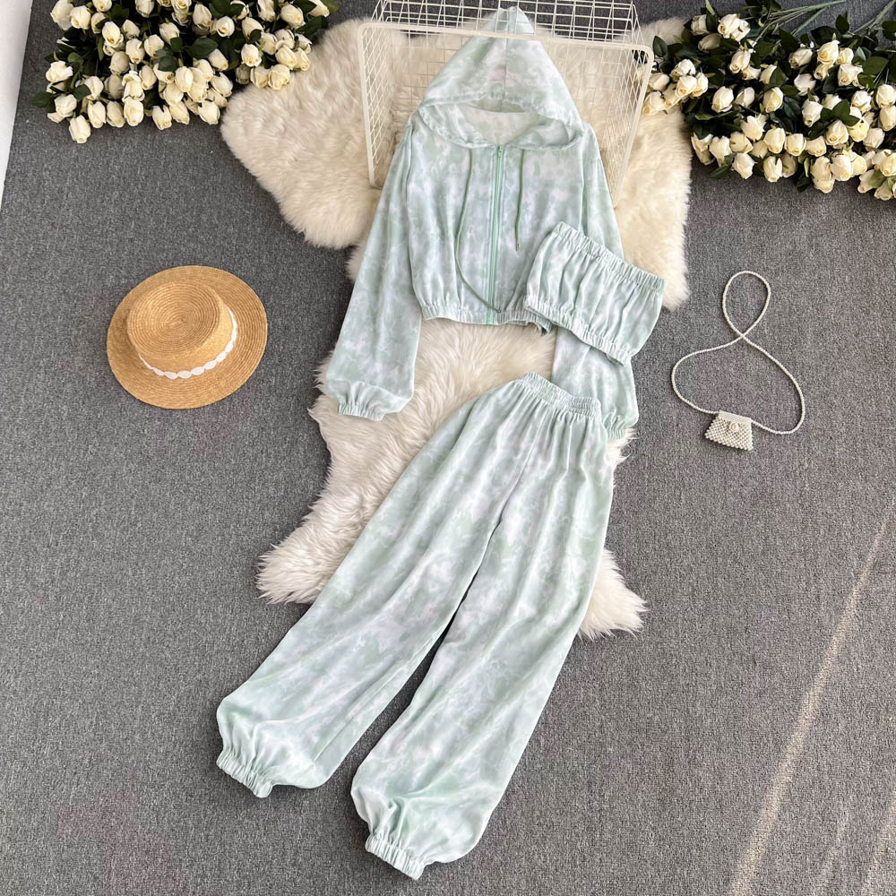This Retro Tie-Dye Three Piece Set is crafted from a blended fabric. Please note: matching brand hats, accessories, bags, and shoes are strictly for styling purposes, not for sale. In addition, the display and shooting environment may cause a slight difference in the product's color compared to its pictured version.