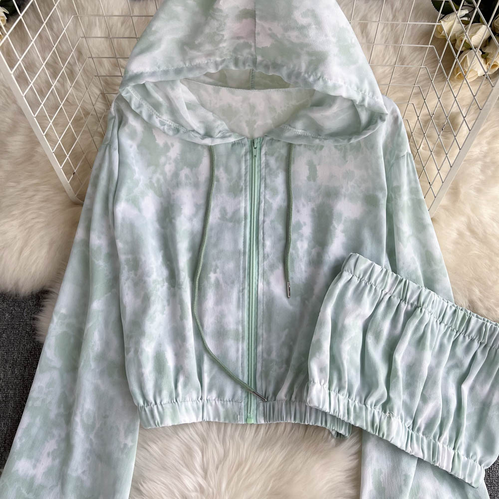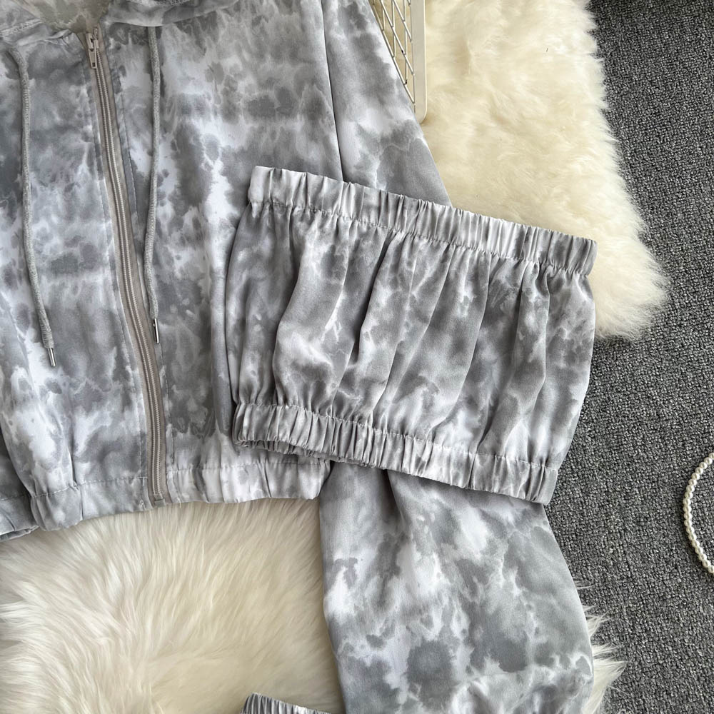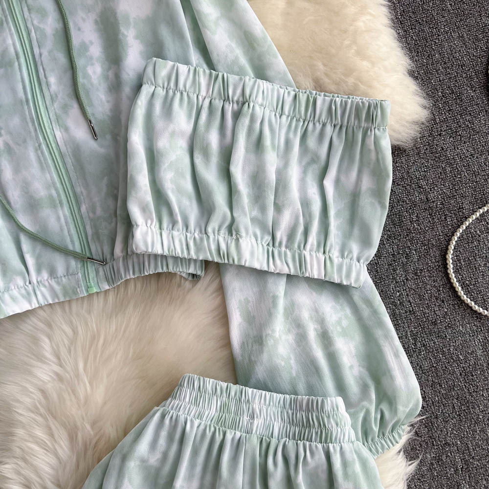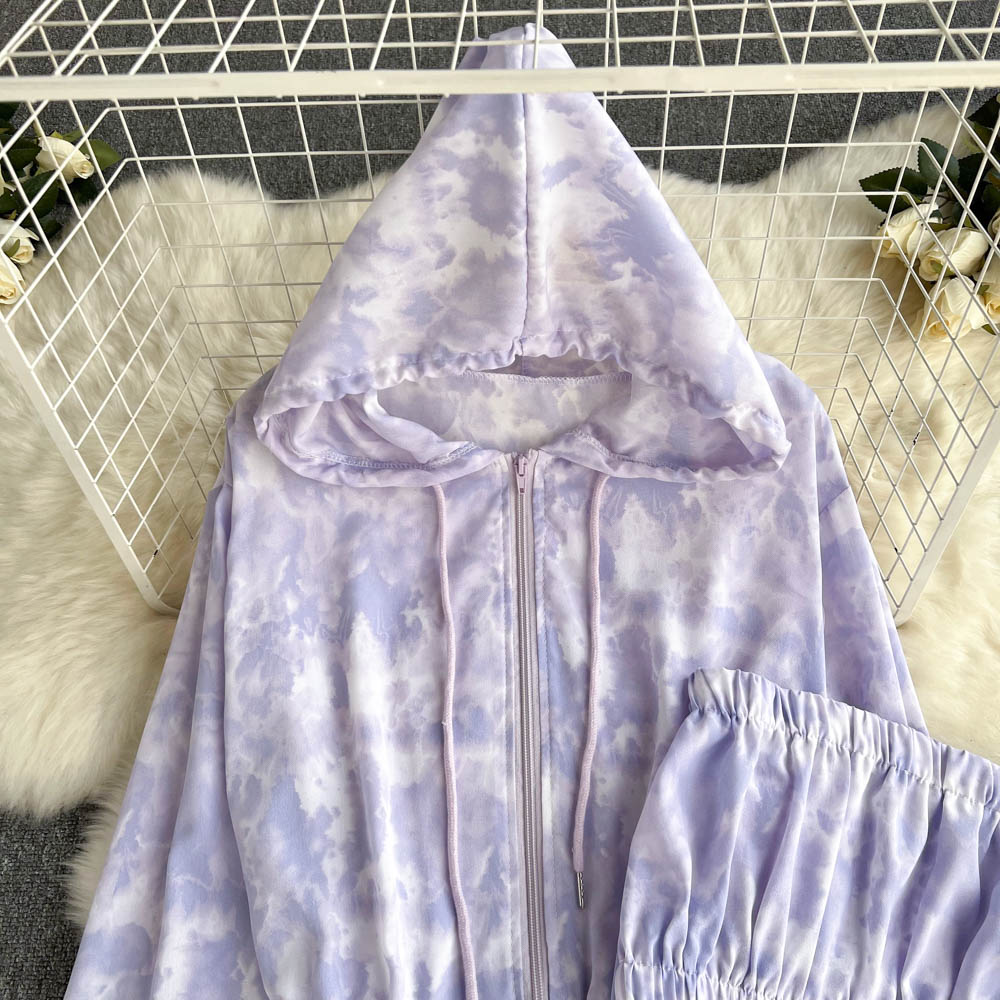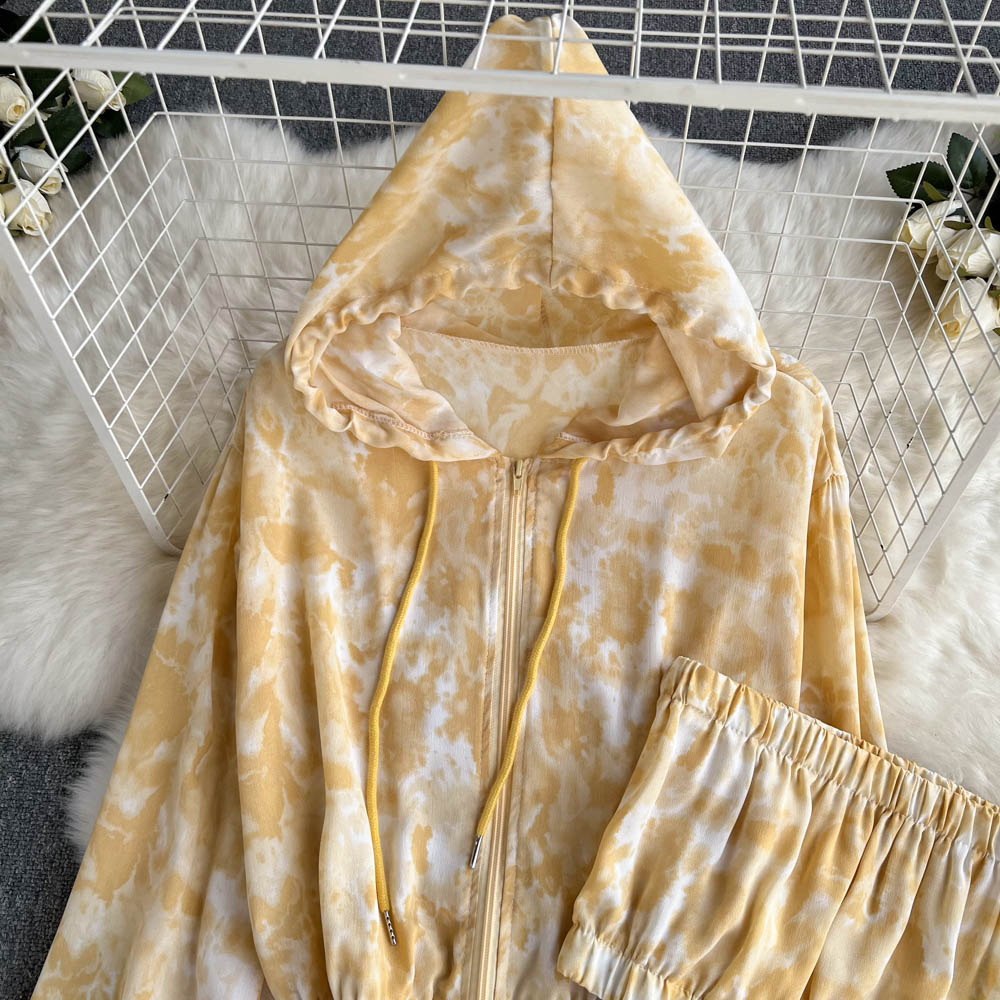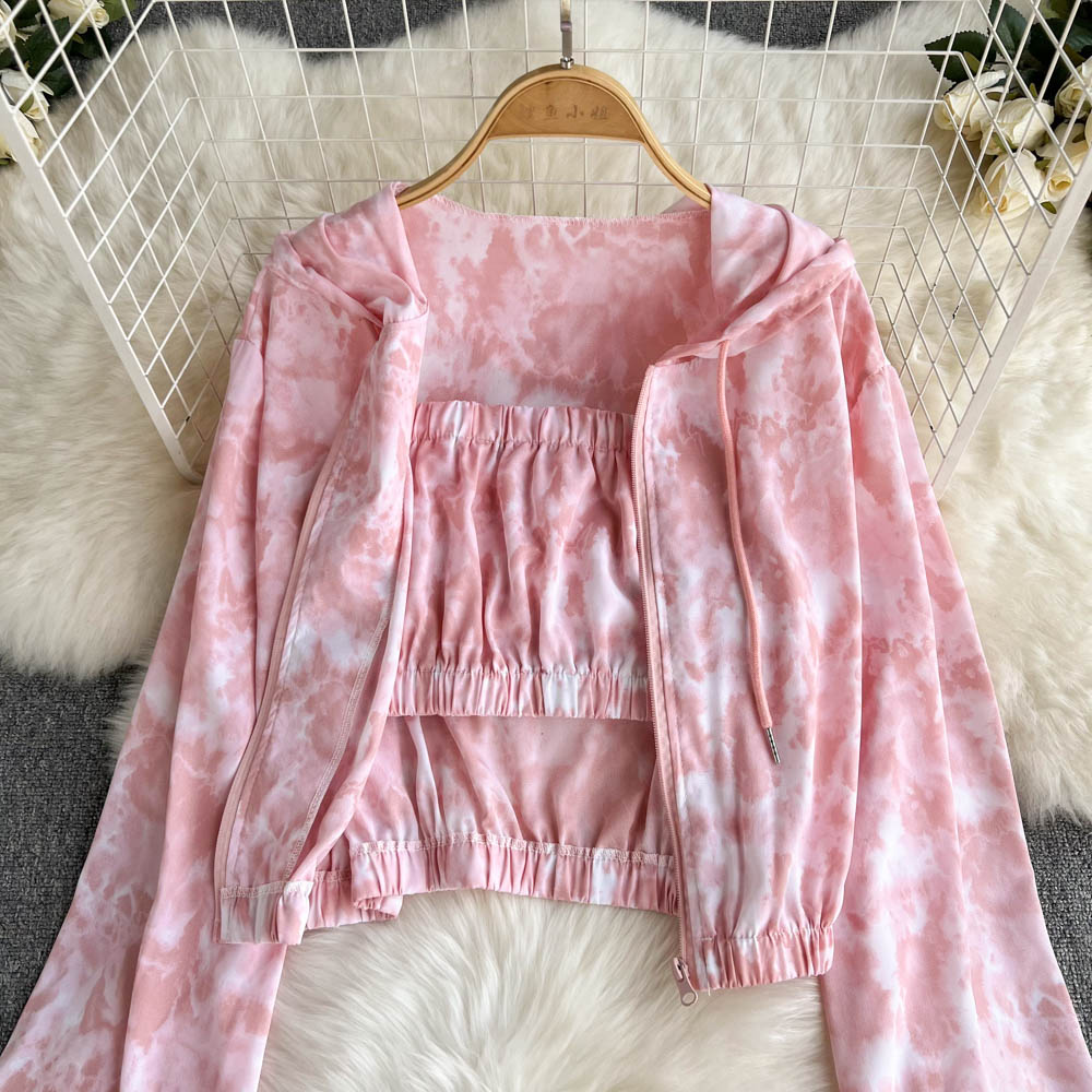 This Retro Tie-Dye Three Piece Set is crafted from a blended fabric. Please note: matching brand hats, accessories, bags, and shoes are strictly for styling purposes, not for sale. In addition, the display and shooting environment may cause a slight difference in the product's color compared to its pictured version.
