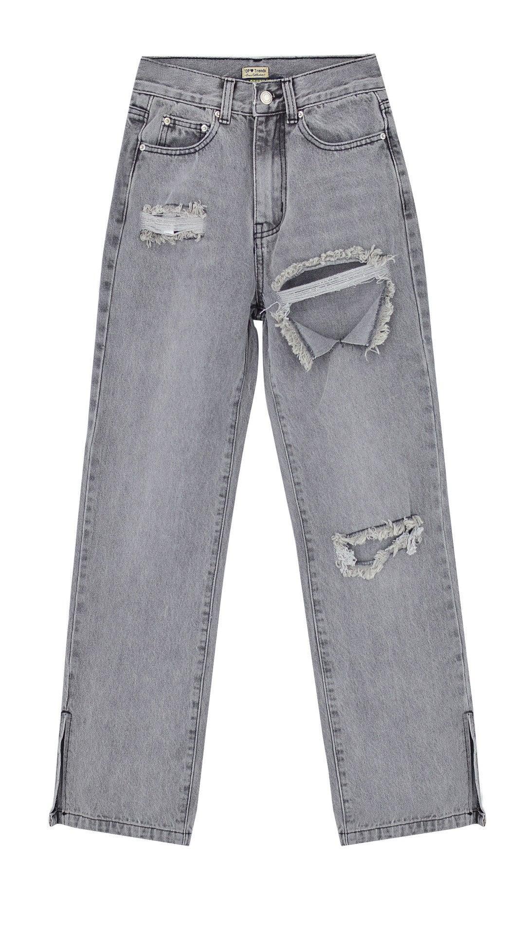 Presenting High Waist Straight Denim Trousers, crafted from pure Cotton Denim. This straight-fit trouser comes with an elevated waistline and a captivating palette of sand grey. It embodies the latest street-hot girl trends, married with the classic hipster elements like washed-out distress, patched zippers, and hand-worn drapes. Step out in style with the perfect finishing touch to any look.