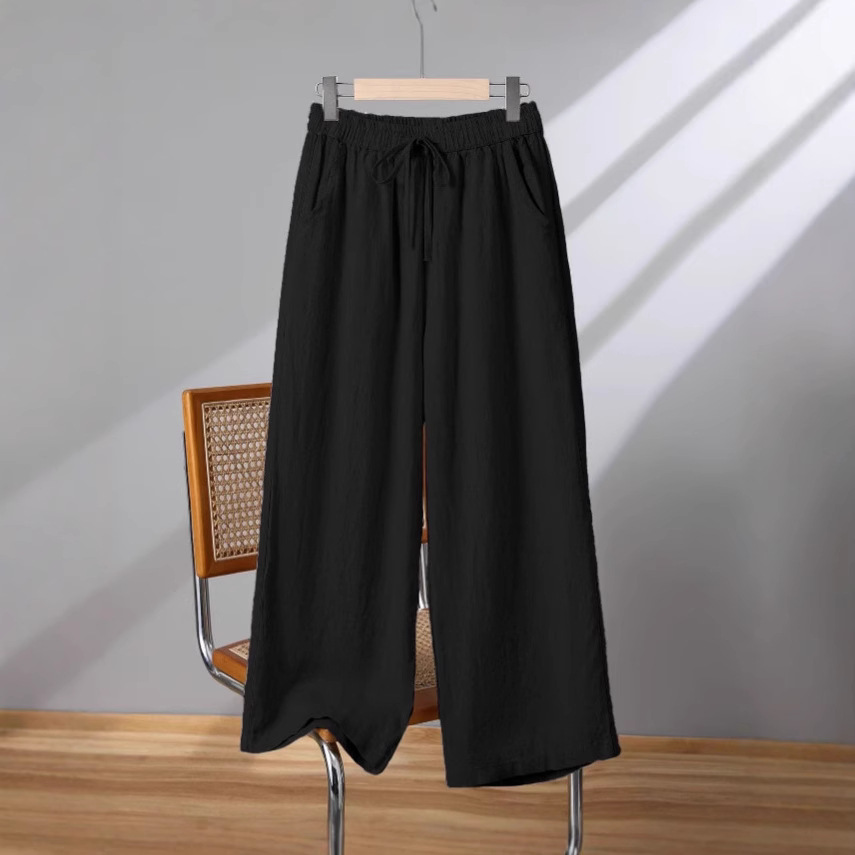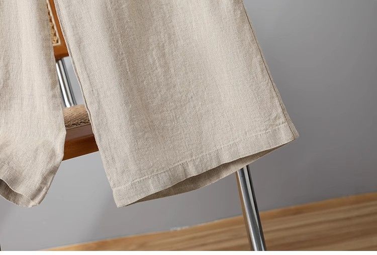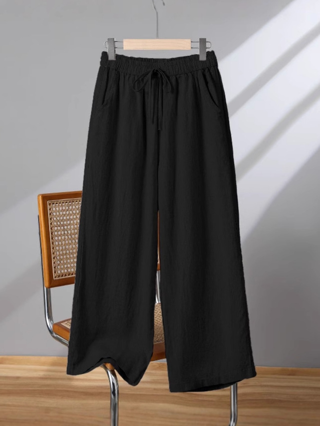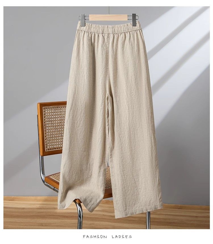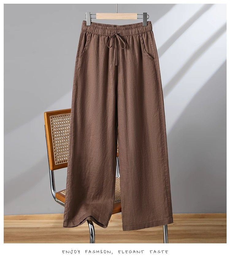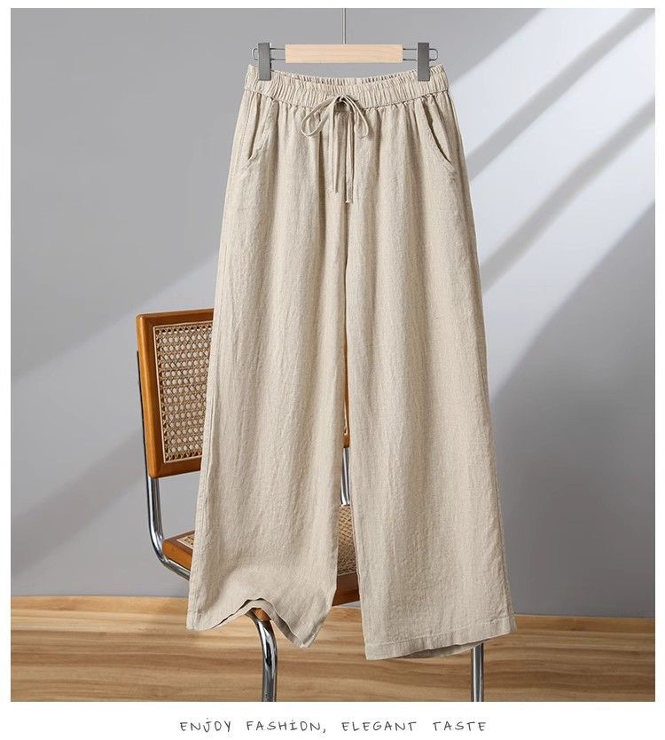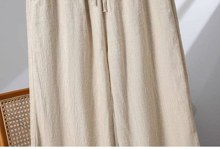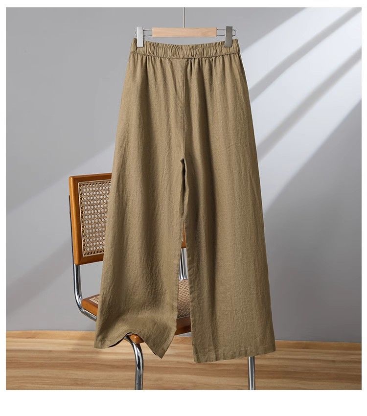 Embrace effortless refinement with our new Linen-Cotton Wide Leg Pants, the ultimate essential for the discerning minimalist. Crafted from a premium flax-rich blend, these nine-point straight-leg pants feature a comfortable elastic waist and functional pocket detailing, offering a breezy, thin profile perfect for warm-weather sophistication.
