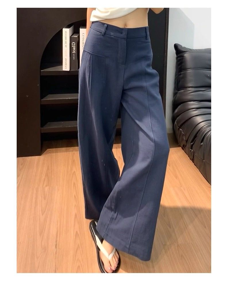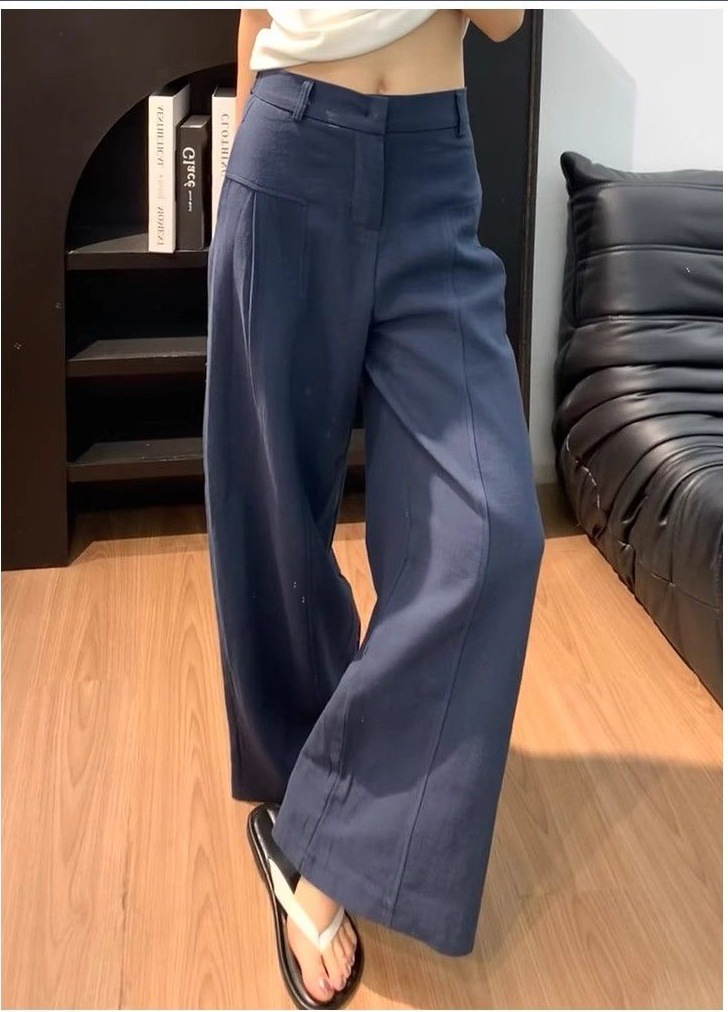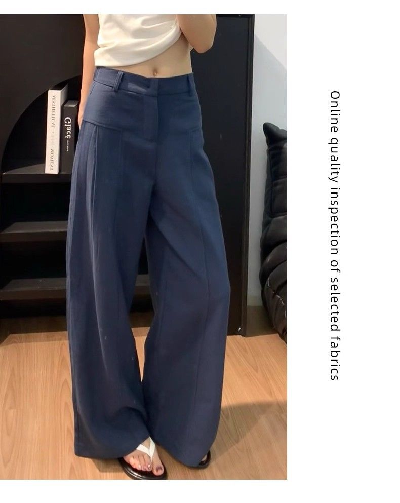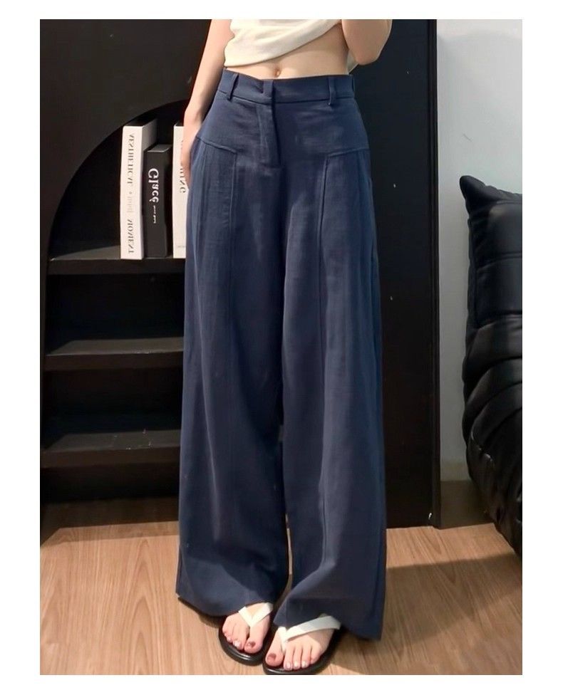 Discover the perfect intersection of comfort and high-end design with our new Dark Blue Linen Wide-Leg Pants. These high-waisted, straight-leg trousers are crafted from a premium cotton and ramie blend, featuring a full lining for a flawless drape and a "comfortable leisure" silhouette that defines modern casual luxury.