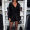 Step into the spotlight with our Chic Sexy Long Sleeve Deep V-Neck Tied Sequin Romper, a masterclass in glamour and commuter style. This black sequined essential features a sophisticated regular collar and a daring deep V-neck, perfectly balanced by a high-waist tie and elegant three-quarter length pants for a high-fashion silhouette.