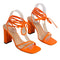 These lace-up peep-toe sandals feature a PU upper material, a square toe design, and moderate softness for comfort. Available in vibrant colors and various sizes, they pair beautifully with skirts and pants for a stylish look.