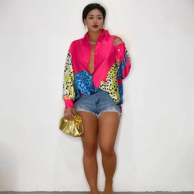 Make a bold statement with this vibrant animal print long sleeve shirt. Featuring a loose fit and a classic button-up design, this shirt is perfect for adding a touch of street fashion to your wardrobe