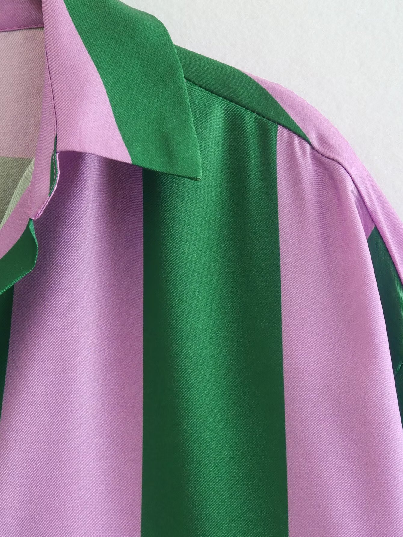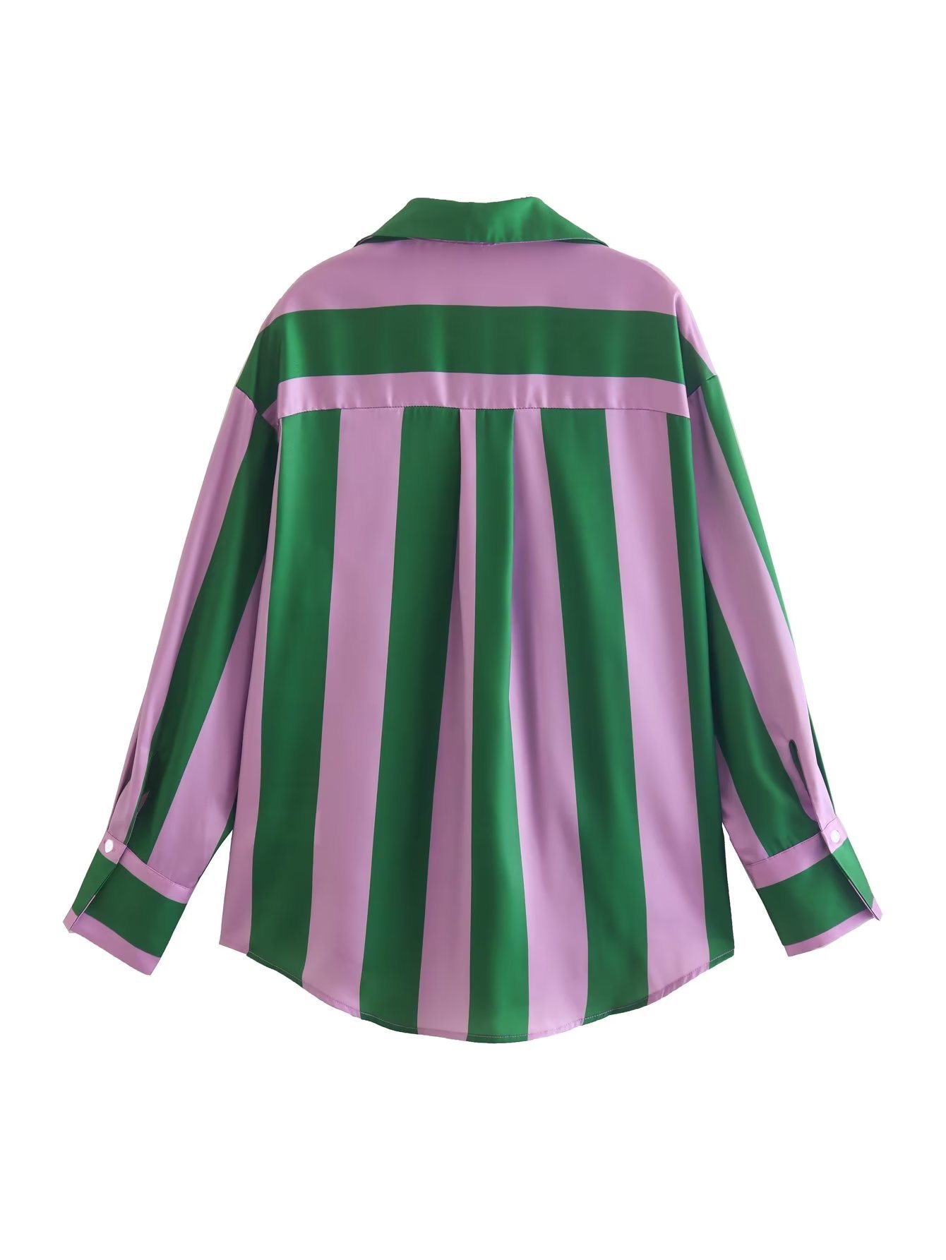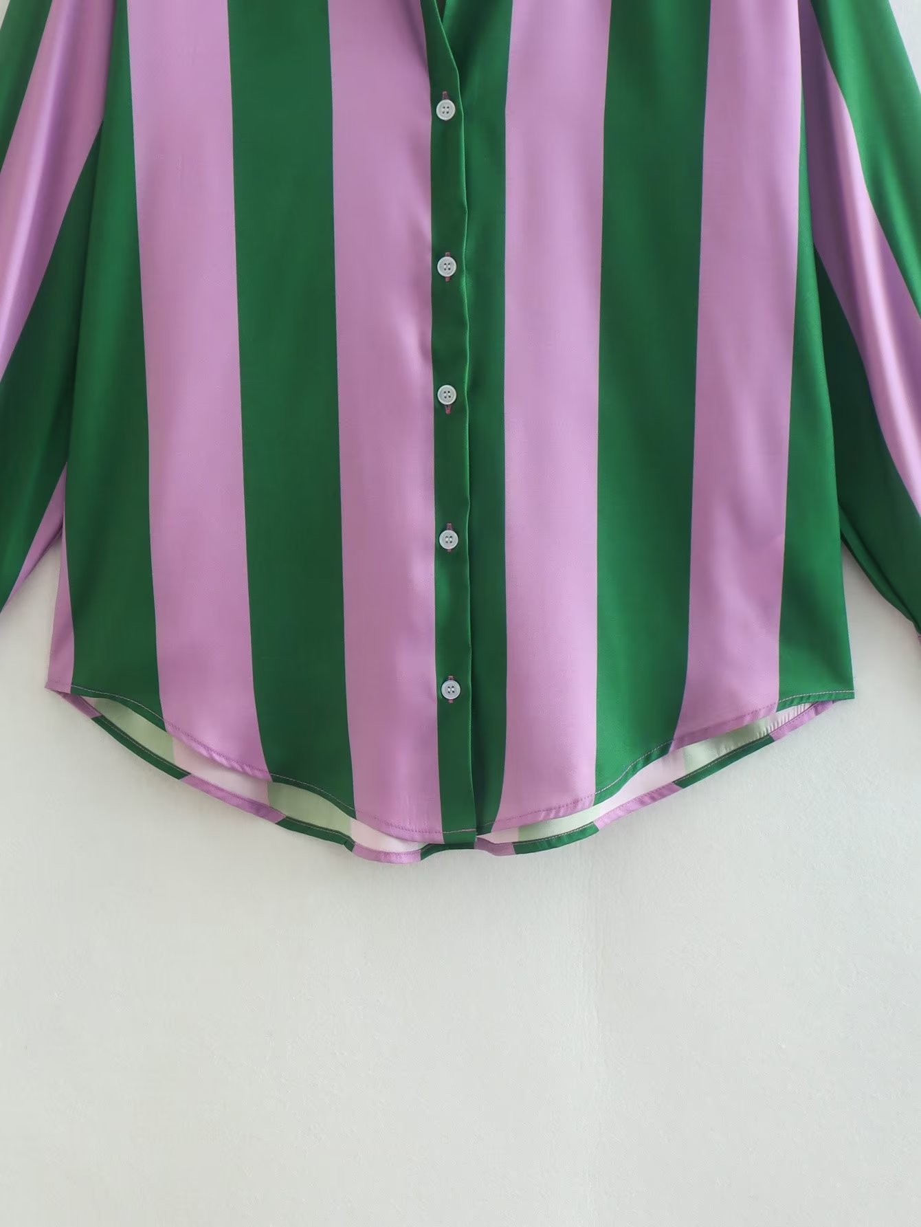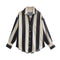 This tricolor vertical stripe splice shirt is rendered with sophisticated sophistication, using a luxe polyester fabric with above 95% main fabric content. It features a classic cardigan silhouette with a shirt collar, long sleeves, printed/dyed pattern, and a trendy row of buttons. The perfect choice for those seeking a more nuanced look.