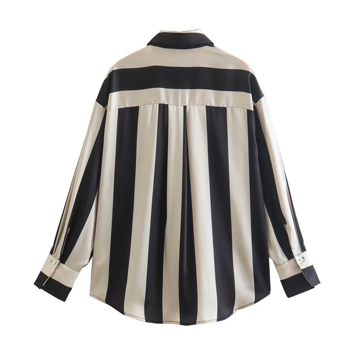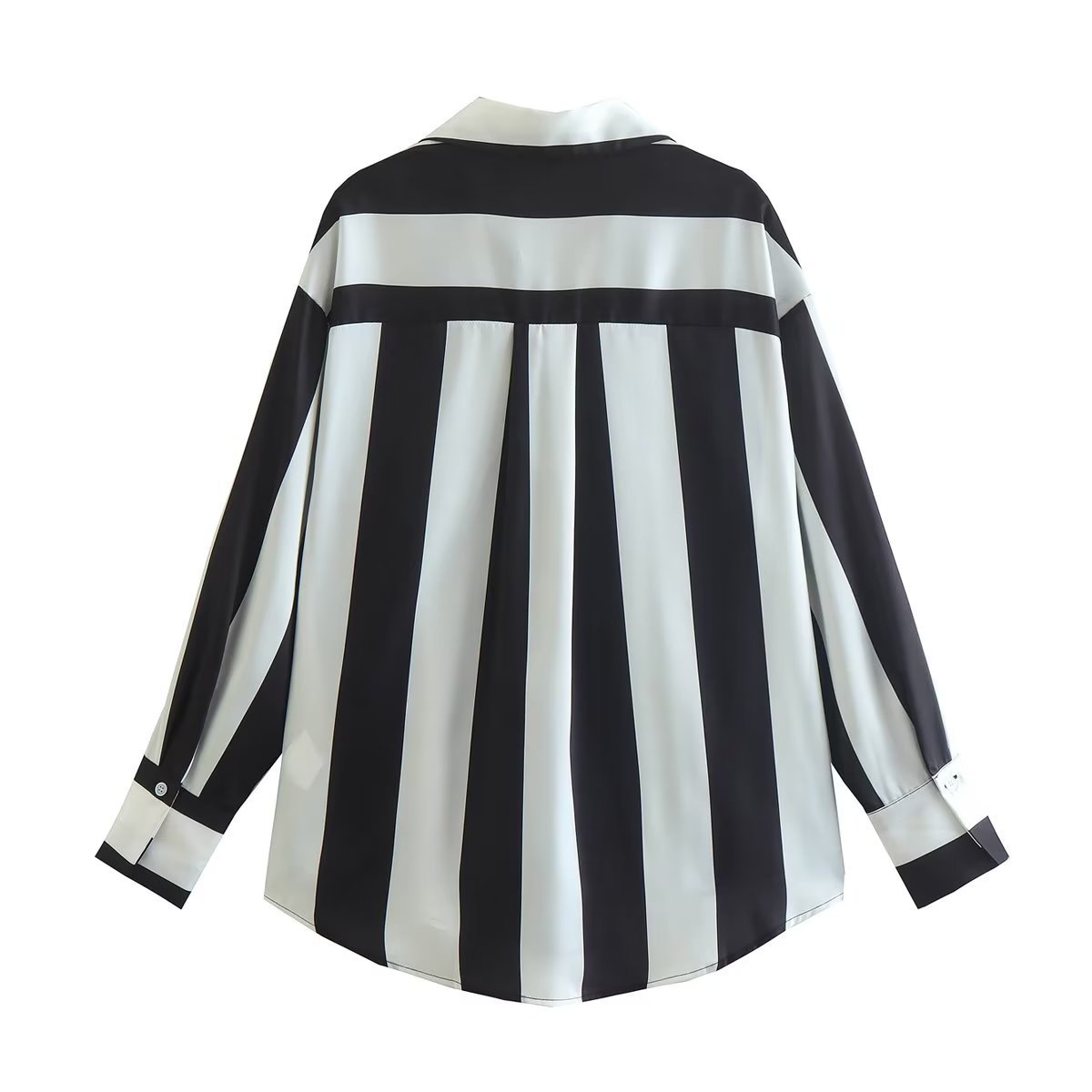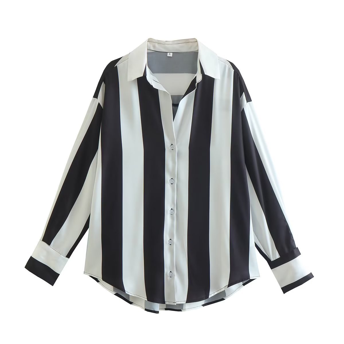 This tricolor vertical stripe splice shirt is rendered with sophisticated sophistication, using a luxe polyester fabric with above 95% main fabric content. It features a classic cardigan silhouette with a shirt collar, long sleeves, printed/dyed pattern, and a trendy row of buttons. The perfect choice for those seeking a more nuanced look.