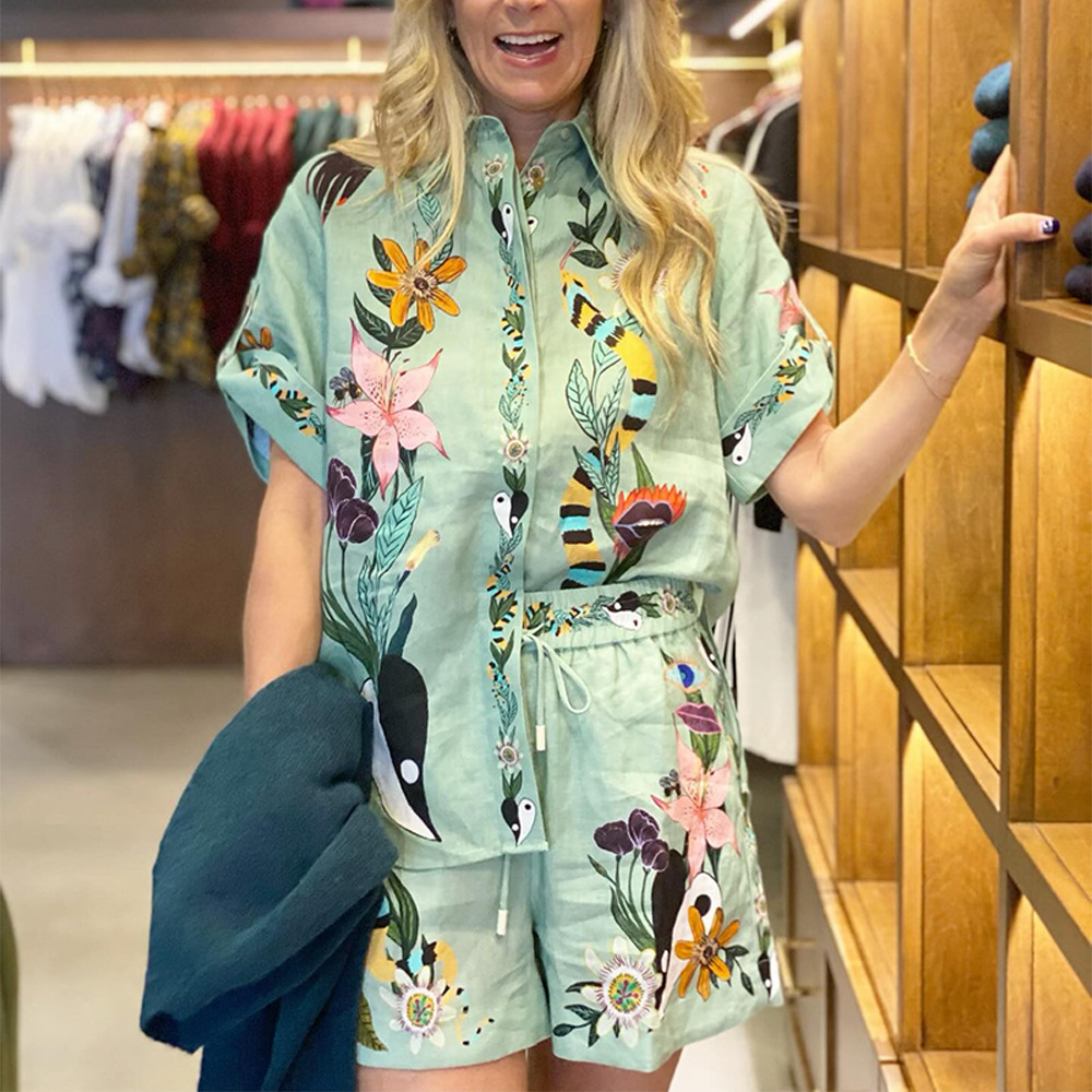 Lapel Shirt Shorts Two Piece Set