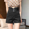 Denim shorts with buttons and a flattering A-line cut for a bold, casual look.