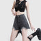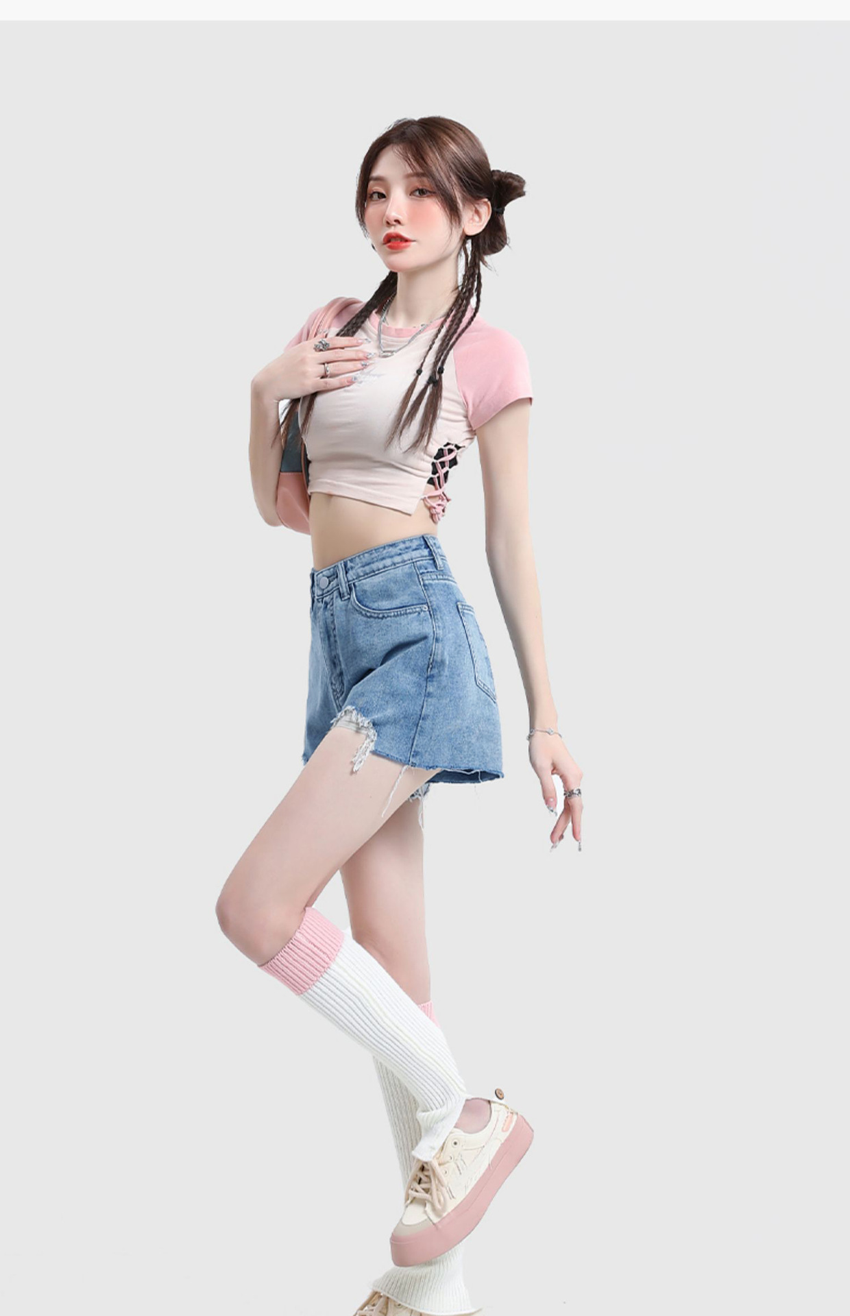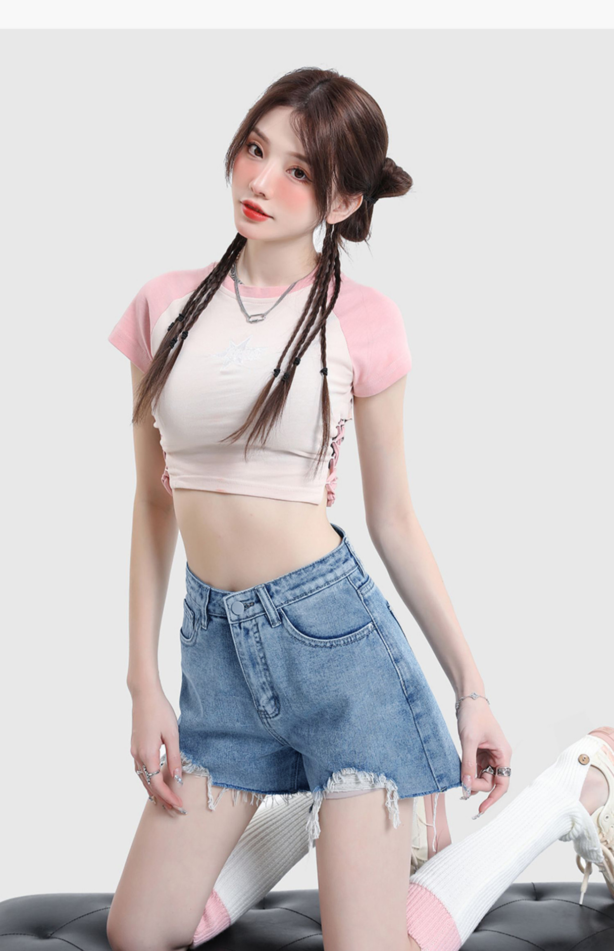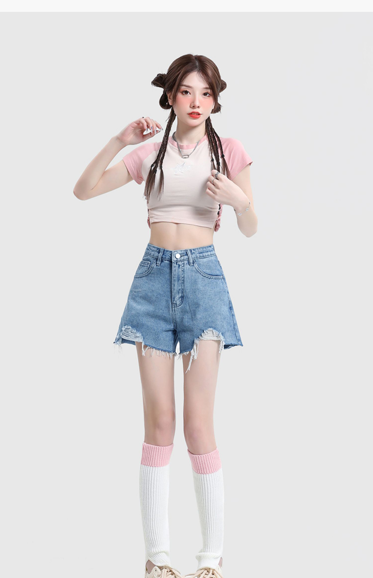 High-waisted denim shorts with a loose, wide leg fit and edgy distressed details for a bold, standout look.