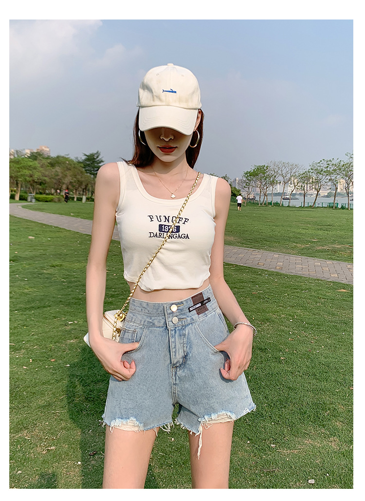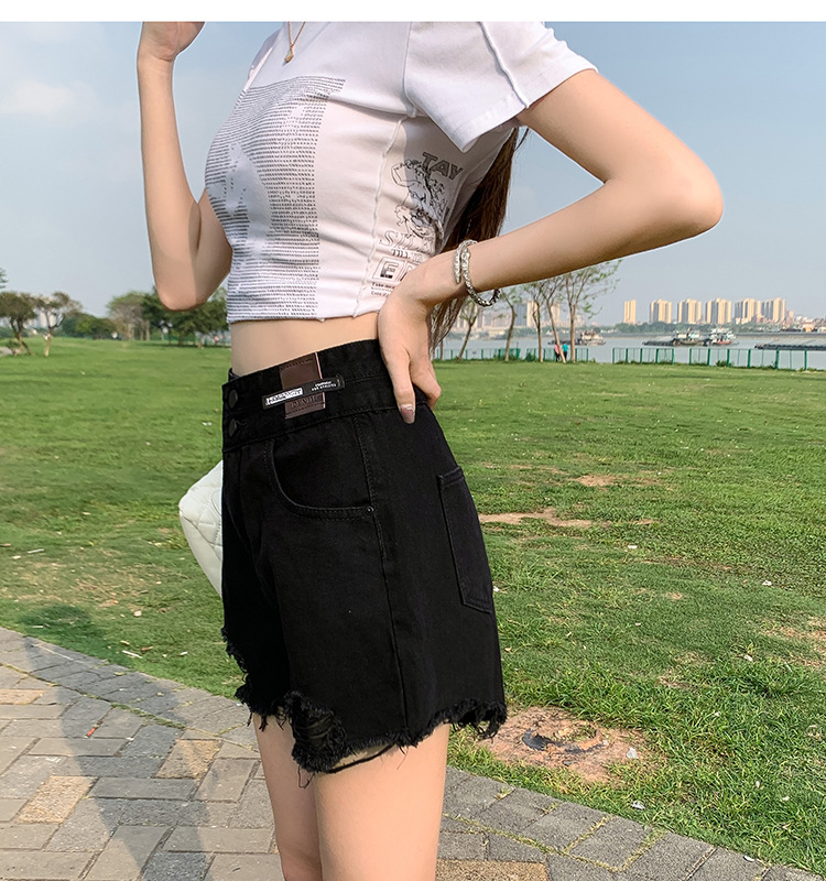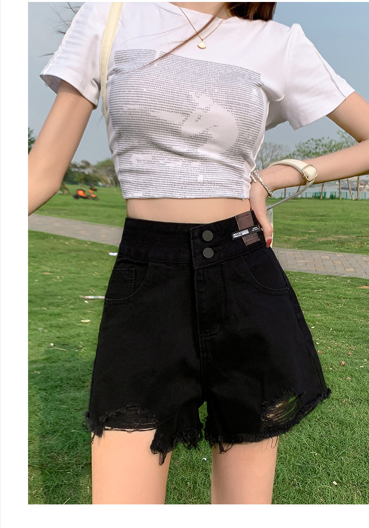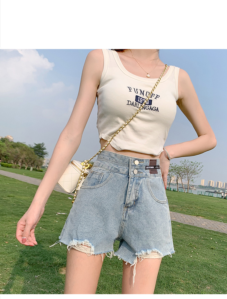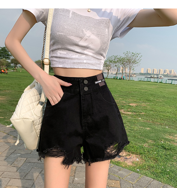 Versatile Casual High-Waisted Double-Button Denim Shorts