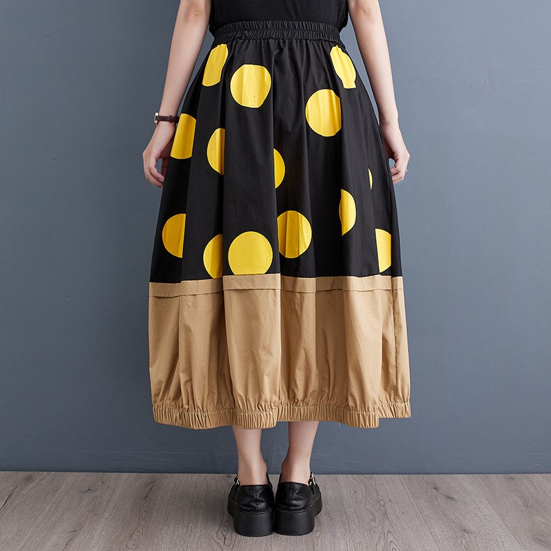 Add some flair to your outfit with these dotted A-line skirts. Made from high-quality cotton pop fabric, these skirts are soft, breathable, and comfortable to wear. The wave point pattern adds a touch of fun and creativity, while the wrinkling process gives them a chic and casual look. Whether you choose the apricot or the black color, you’ll love how these skirts fit and flatter your figure. They are one size fits all, with a waist measurement of cm / CM. Order yours today and enjoy the versatility of these A-line skirts.