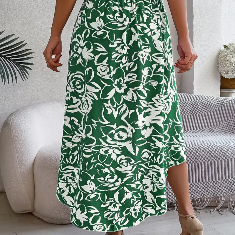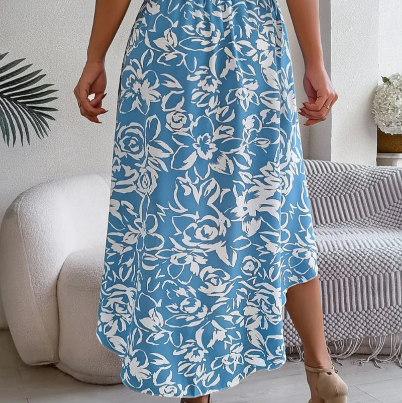 High-Low Printed High Waist Skirt