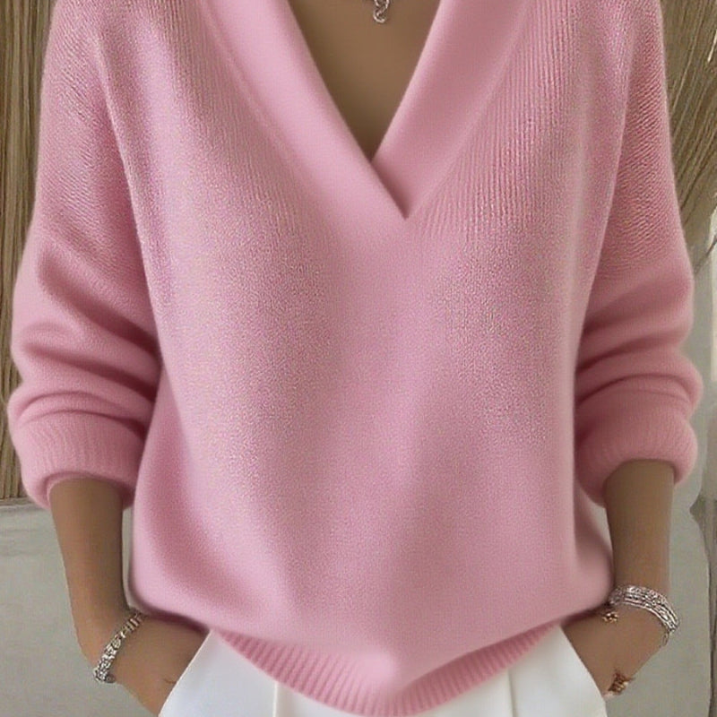 Elegant Soft V-neck Knit – Chic Long Sleeve Style