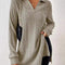The sweater features a slit design, opaque sheer quality, and slight stretch for comfort. Made from polyester, it is machine washable and suitable for low-heat tumble drying.