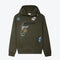 The hooded collar adds an extra layer of warmth and protection against the elements, while the hood cover front placket ensures a snug fit. The military green color is both stylish and versatile, easily matching with various outfits. The combination of letters, numbers, and text patterns adds a modern and edgy touch, making this sweatshirt a standout piece in any wardrobe.