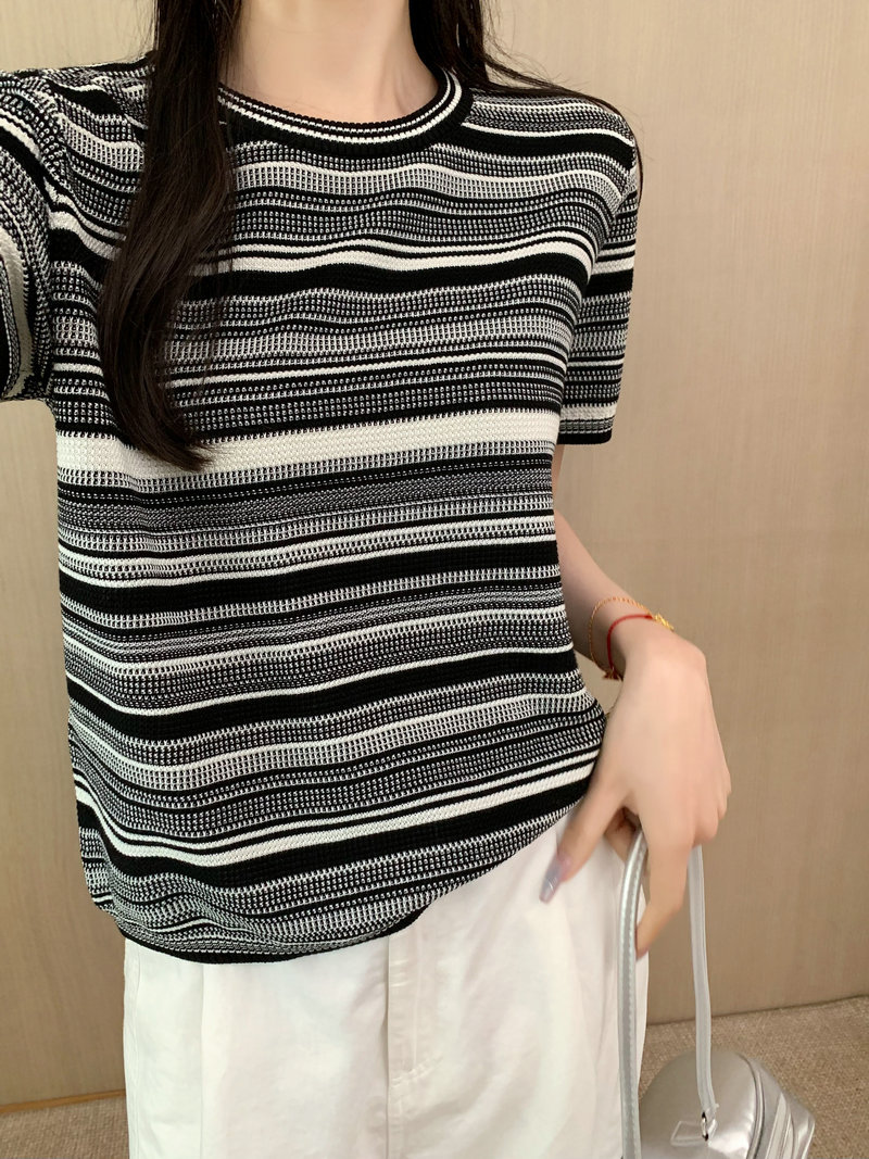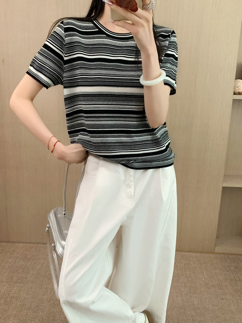 This bold round neck tee with short sleeves offers effortless style and comfort for every daring look.