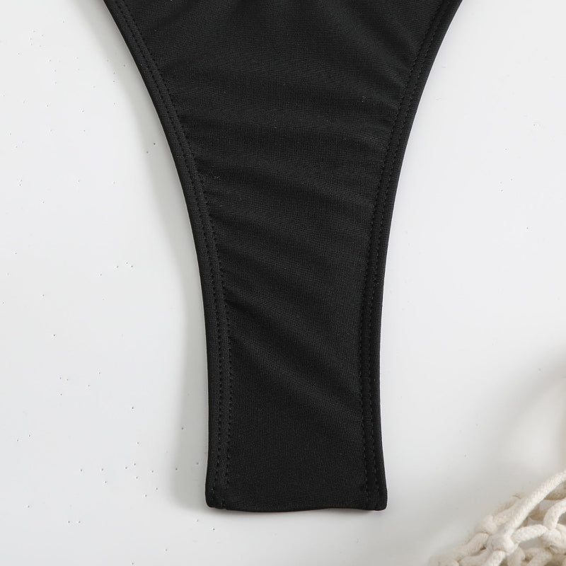 Solid Color Special Mesh Three - Piece Beachwear Set