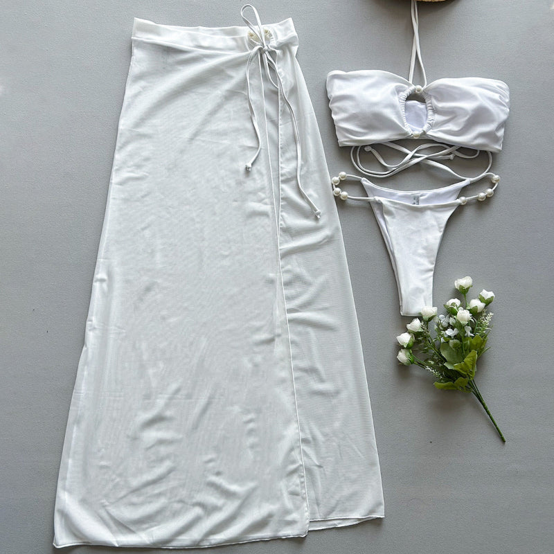 This bold three-piece bikini set is designed to turn heads and embrace your confidence with every wear.