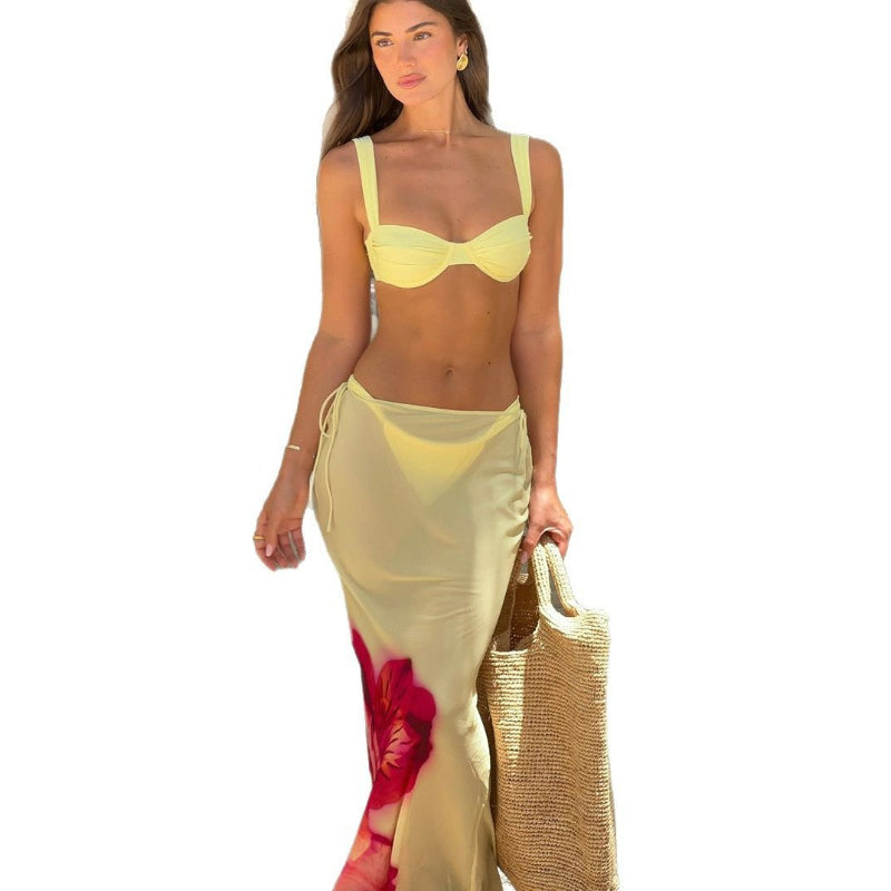 Three-Piece Bikini Set: The Ultimate Summer Statement in Yellow Print