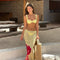 Jewelry: Layered gold body chains or delicate gold anklets to catch the sunlight.