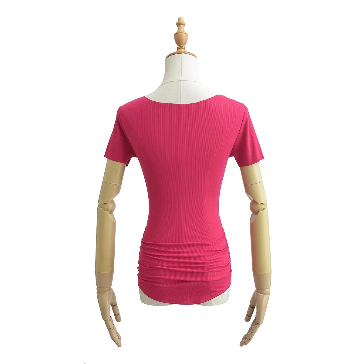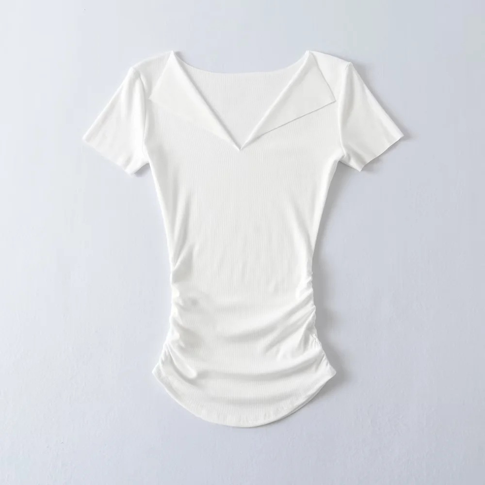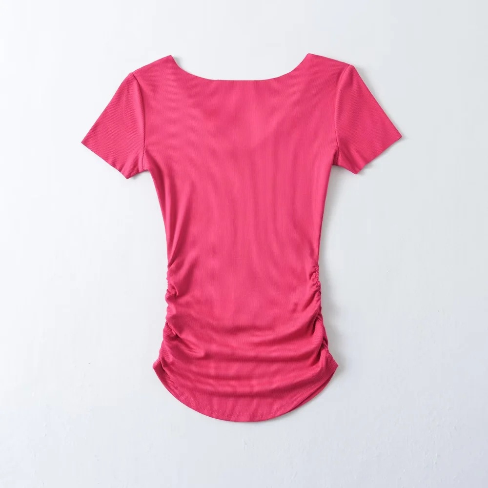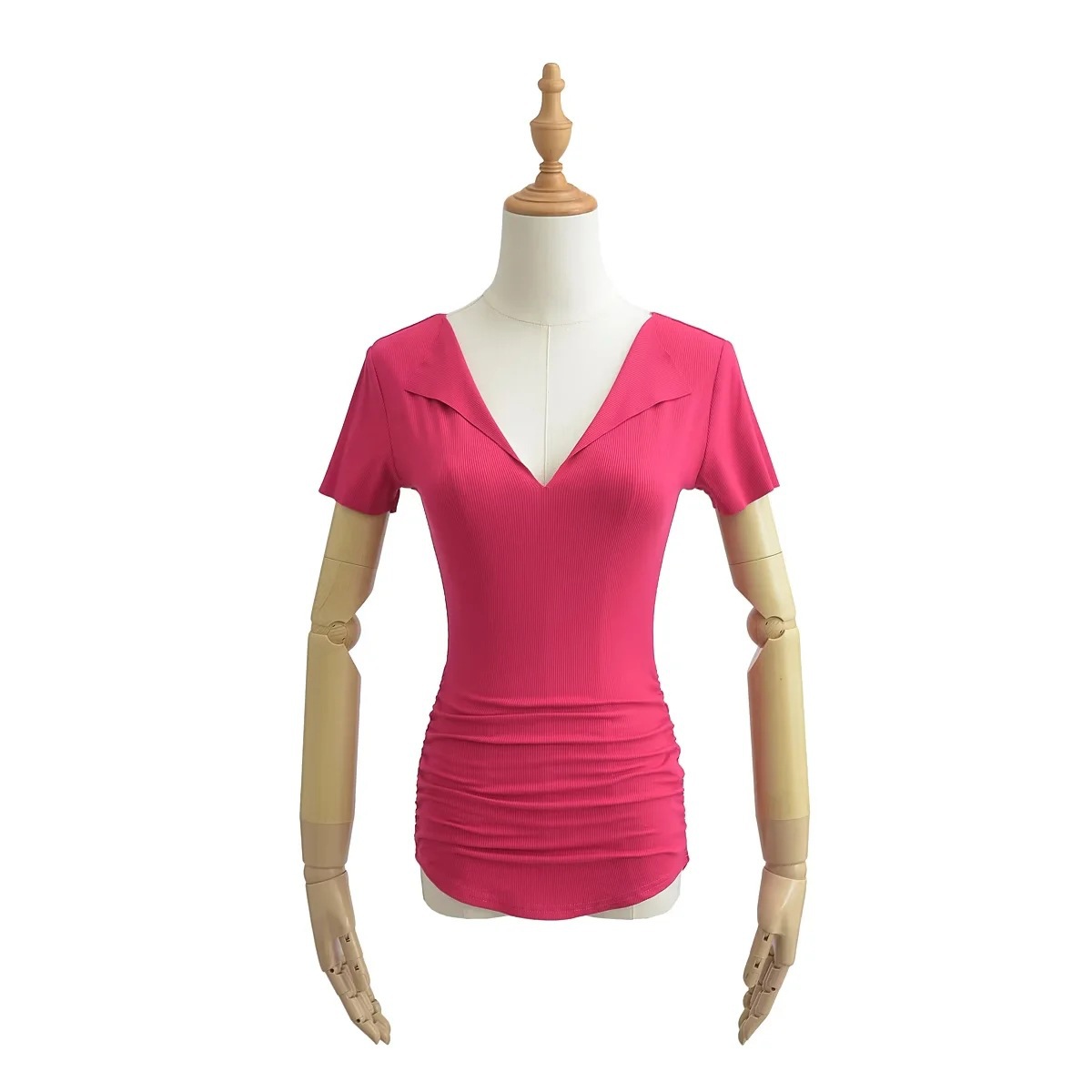 This daring short-sleeved shirt features a half-open design with a bold, solid color and intricate threading for a standout look.