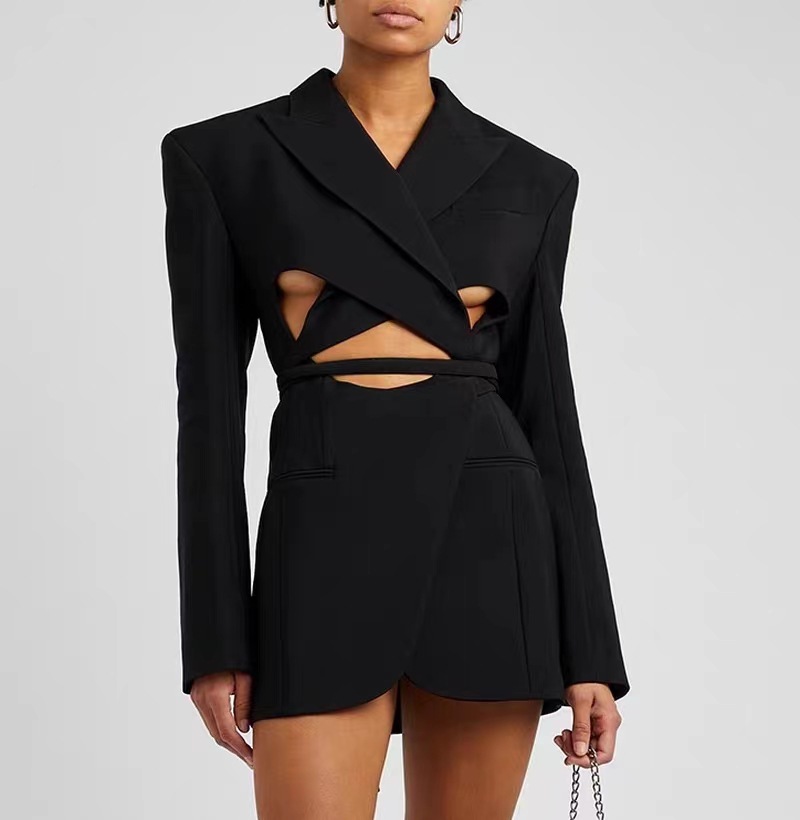 This top is crafted from high-grade modern texture fabric, creating a luxurious look. It's designed with a slim fit, a shorter length of 40-50 cm, a suit collar, long sleeves, a regular sleeve, Polyester fabric, and 95% or above polyester fiber content. Its royal sister style with a flirtatious, spicy-girl vibe is sure to make you stand out in style.