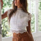 Elevate your look with our elegant semi-high collar top featuring a beautiful geometric hollow-out design. Perfect for a chic and stylish outfit. Available in classic black and white