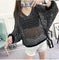 Mesh hollow V-neck Top - runwayfashionista.com