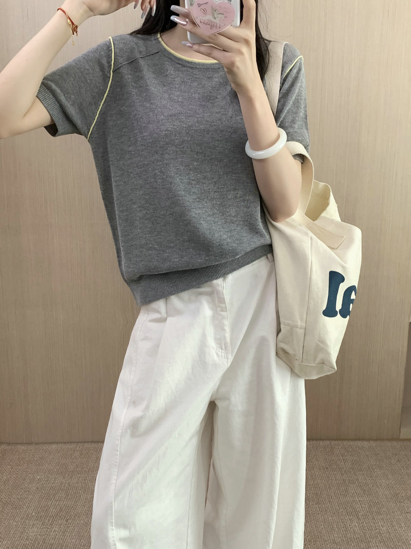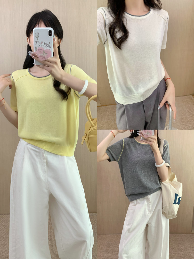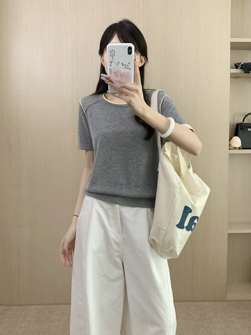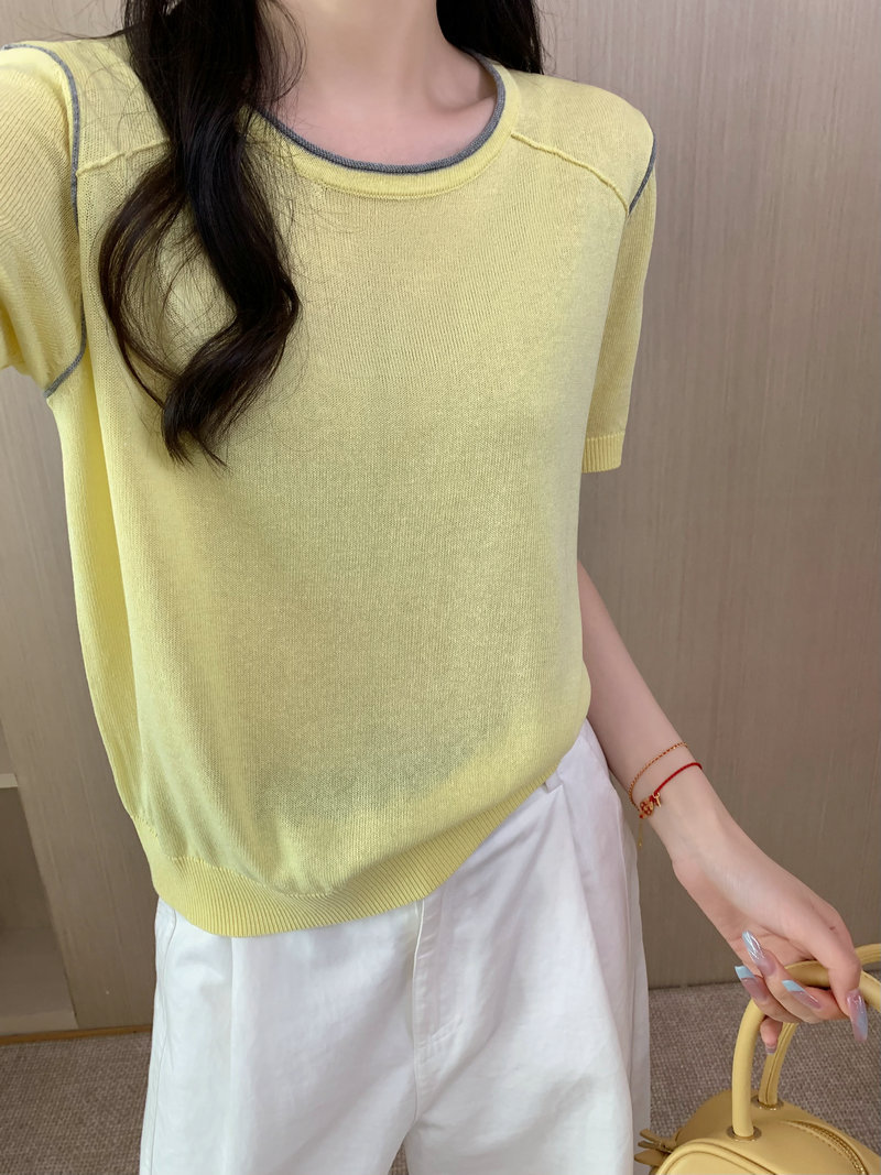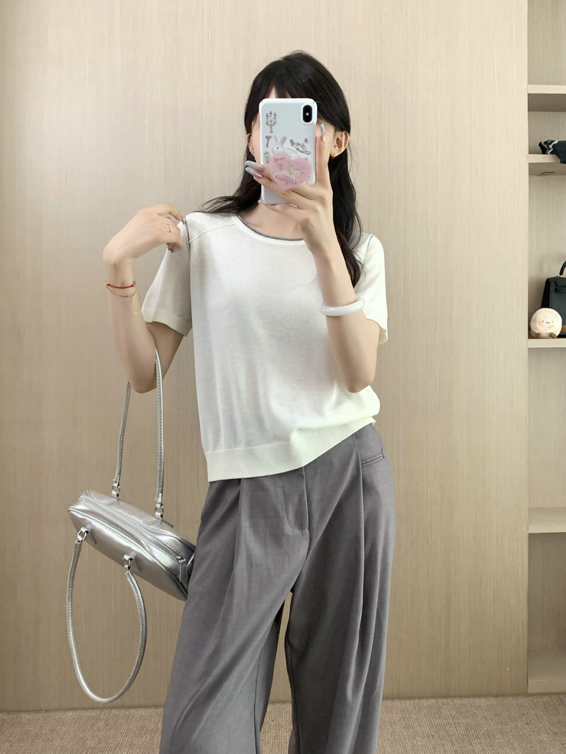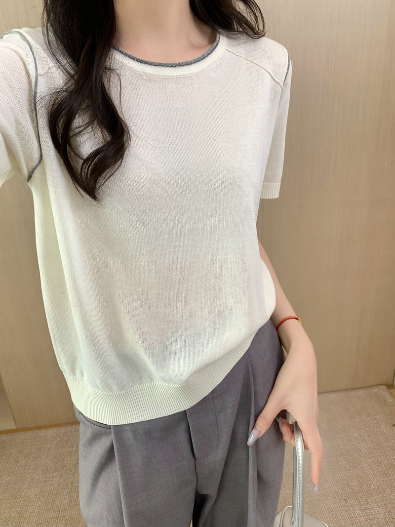 Round Neck Short Sleeve Silk Top
